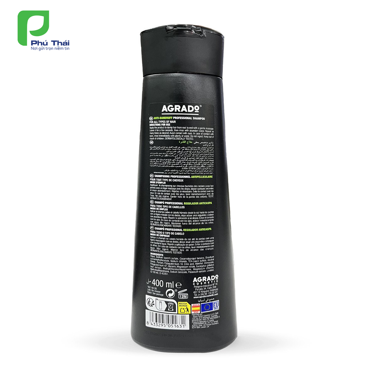 Agrado dầu gội đầu ngăn ngừa gàu 400ml/ Agrado champú professional regulador anticaspa/ agrado antidandruff professional shampoo