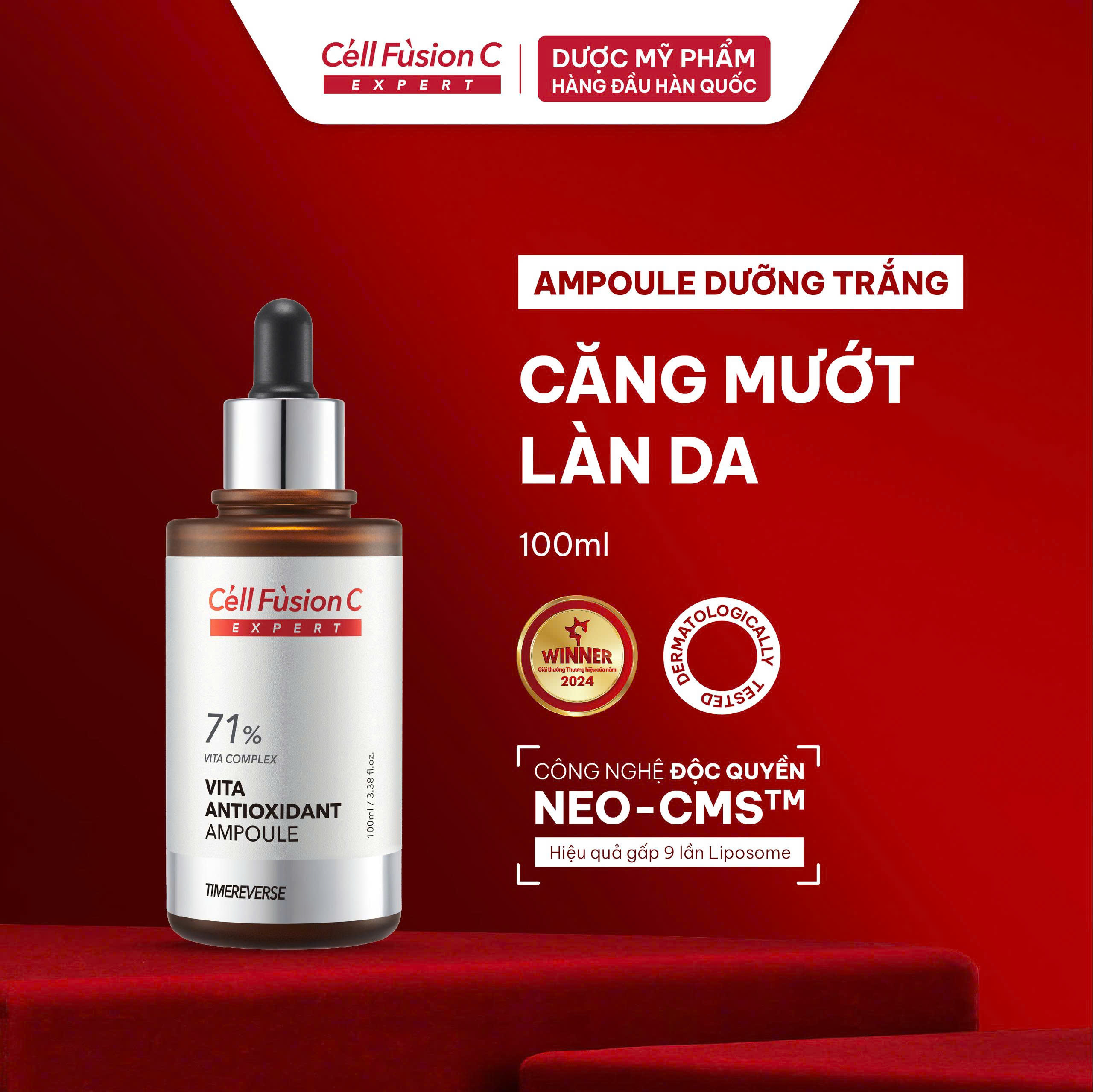 - Cell Fusion C Expert Vita Antioxidant Ampoule là tinh chất chứa 71% mận Kakadu - “siêu thực phẩm” giàu vitamin C giúp da sáng bật tone và đều màu hơn rõ rệt.