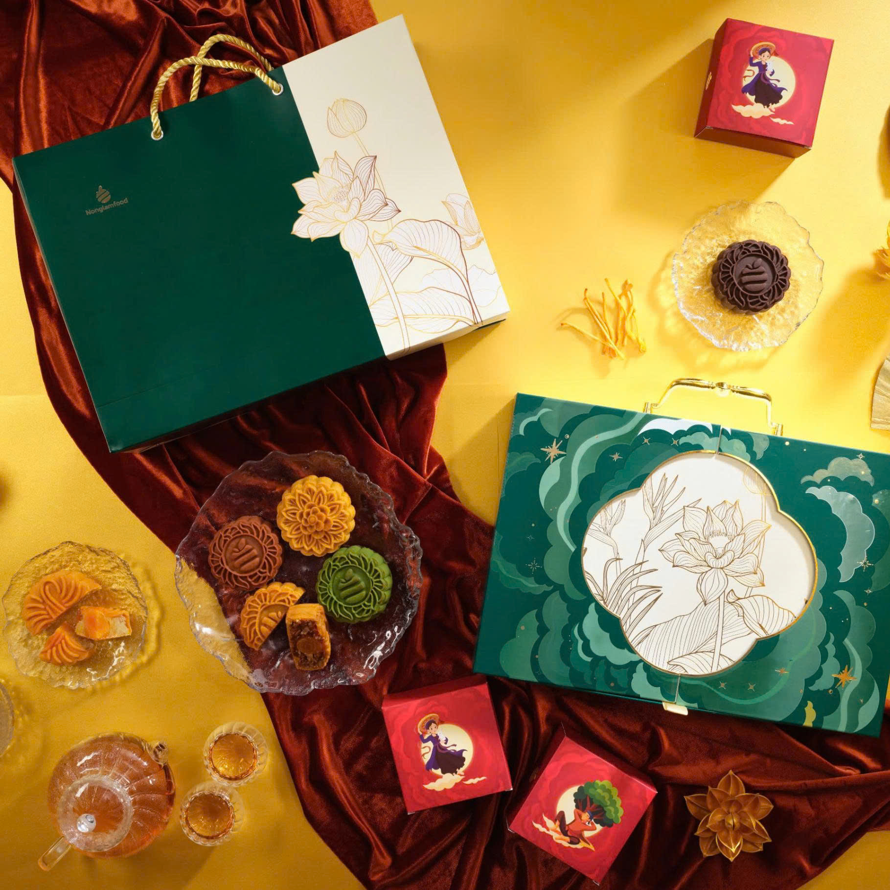 Bánh Trung Thu 2025 – Thu Như Ý (hộp Xanh lá 4 bánh 1 trà) (kèm túi)