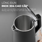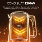 Với công suất 2200W mạnh mẽ, sản phẩm giúp đun sôi nước nhanh chóng, tiết kiệm thời gian và năng lượng. Công suất cao này đảm bảo hiệu quả tối ưu, giúp bạn có nước nóng ngay lập tức mà không phải chờ đợi lâu.