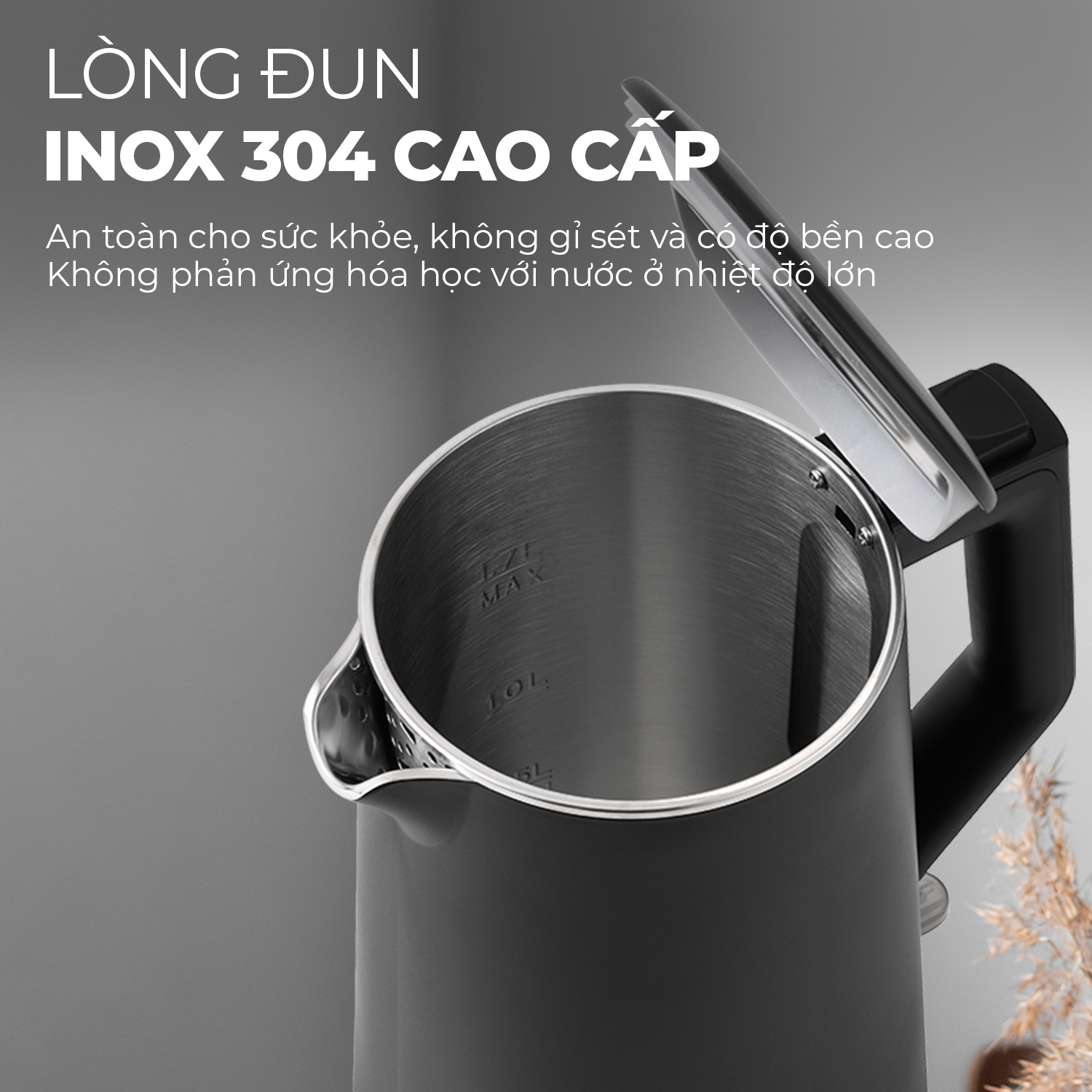 Với dung tích 1,7L, sản phẩm có khả năng nấu đủ nước cho cả gia đình trong một lần, tiết kiệm thời gian và công sức. Thiết kế lớn giúp đáp ứng nhu cầu sử dụng của nhiều người, lý tưởng cho các bữa ăn gia đình hoặc khi cần nước nóng trong suốt cả ngày.