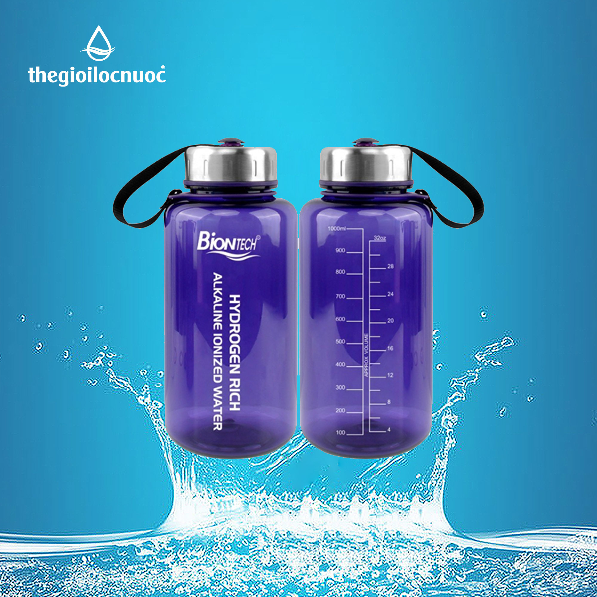 - BÌNH ĐỰNG NƯỚC BIONTECH, MODEL: BT1000PHÂN LOẠIBình đựng nước uống dùng trong gia đình hoặc mang điTHÔNG SỐ KỸ THUẬT- Nắp chai: Nhựa PP + Thép không gỉ 201- Thân chai: Nhựa Triton nguyên sinh an toàn thực phẩm- Quai xách: Vải dù (Nylon)- Dung tích: 1000 ml - Xuất xứ: Chính hãng Biontech – Gia công tại Trung Quốc theo tiêu chuẩn hãng Biontech Hàn Quốc.