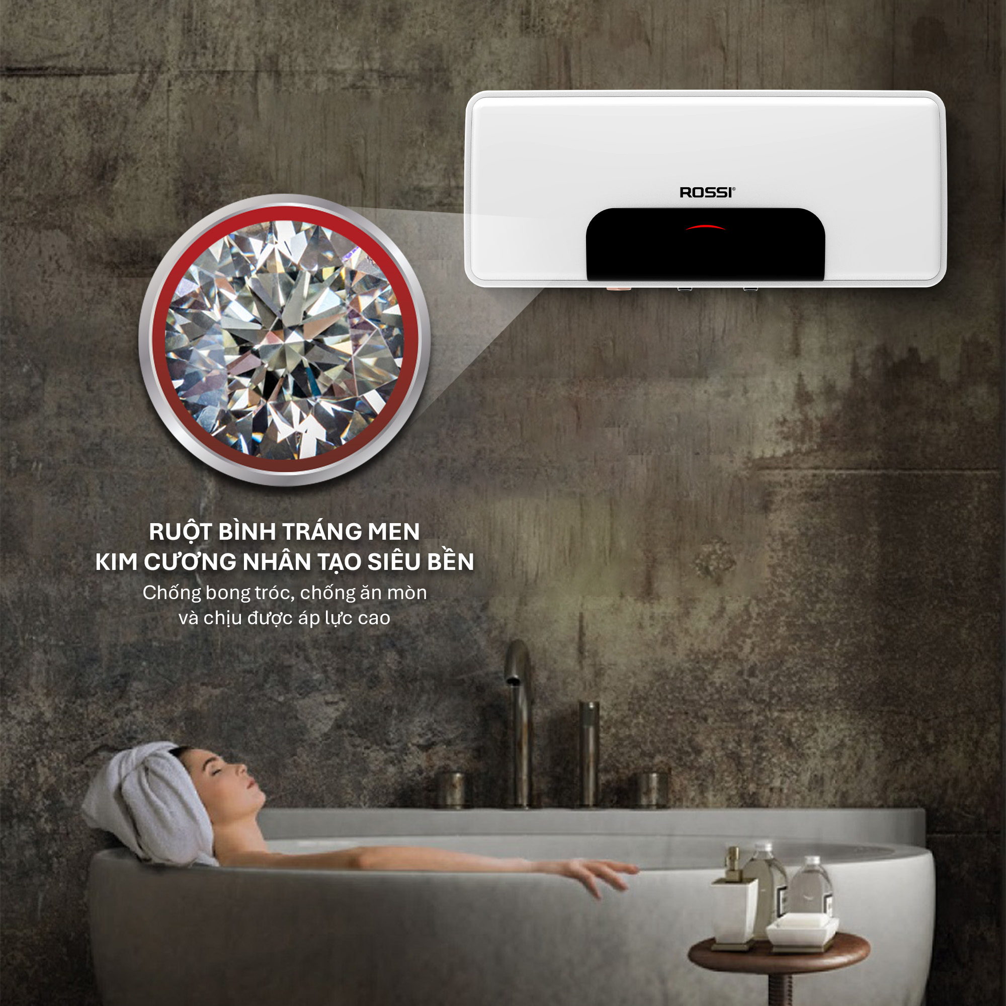 - Ruột bình tráng men kim cương nhân tạo – chống ăn mòn, chống bám cặn hiệu quả.