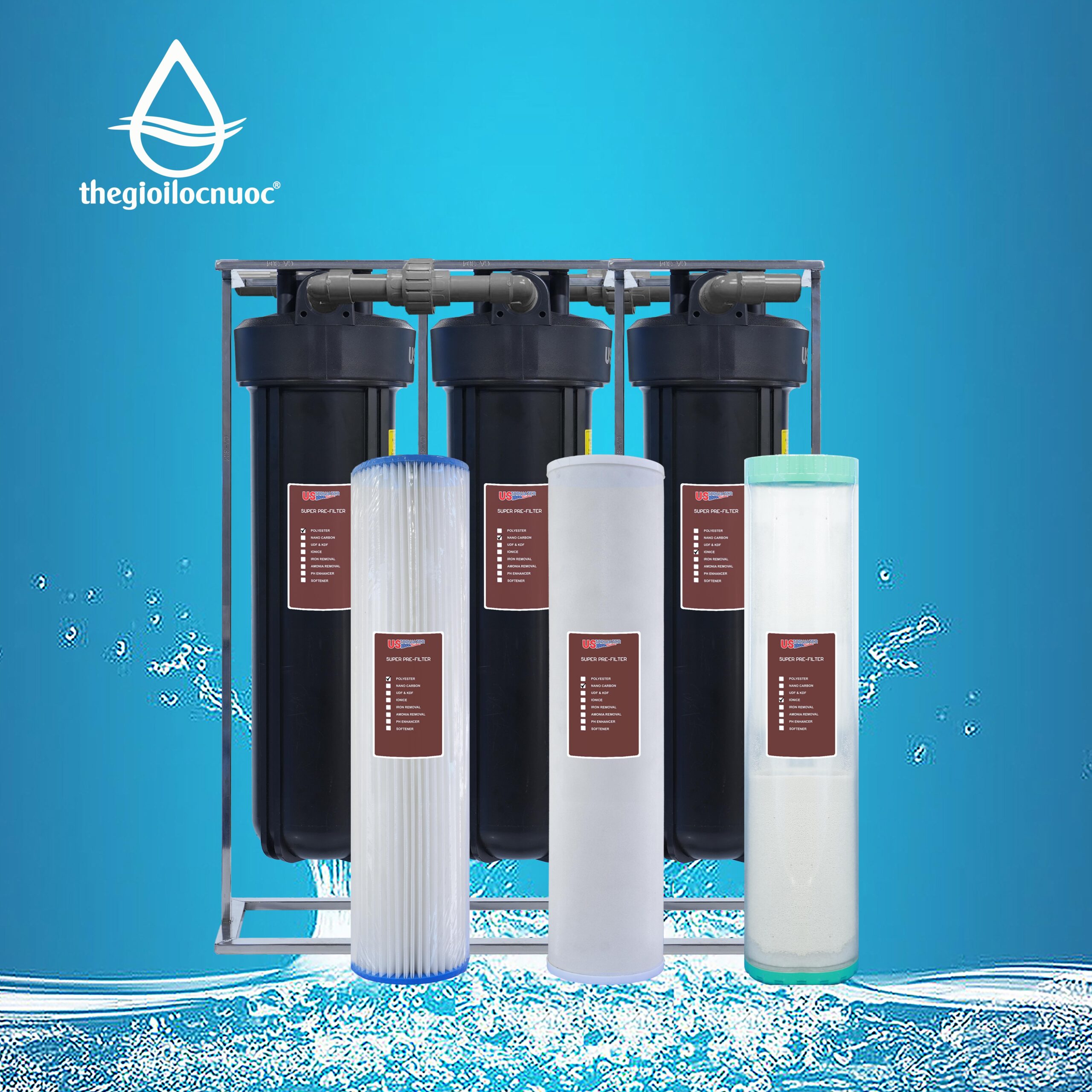 Lọc Tổng Mỹ USTOPWATER sử dụng bộ lõi lọc có hiệu suất lọc tối ưu thay thế cho phương pháp lọc tổng thông thường. Hệ thống lọc sử dụng lõi lọc vải Polyester 20inch béo gấp nếp USTOPWATER (made in Thái Lan) công suất lớn, thực hiện chức năng lọc hiệu quả mà không cần sục rửa, không cần làm mềm, không cần thay lõi thường xuyên nhờ áp dụng các công nghệ lọc mới nhất tại Mỹ.