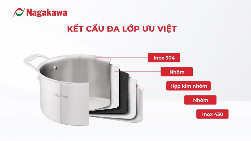 Tên hàng Bộ nồi inox đa lớp Nagakawa NAG1355