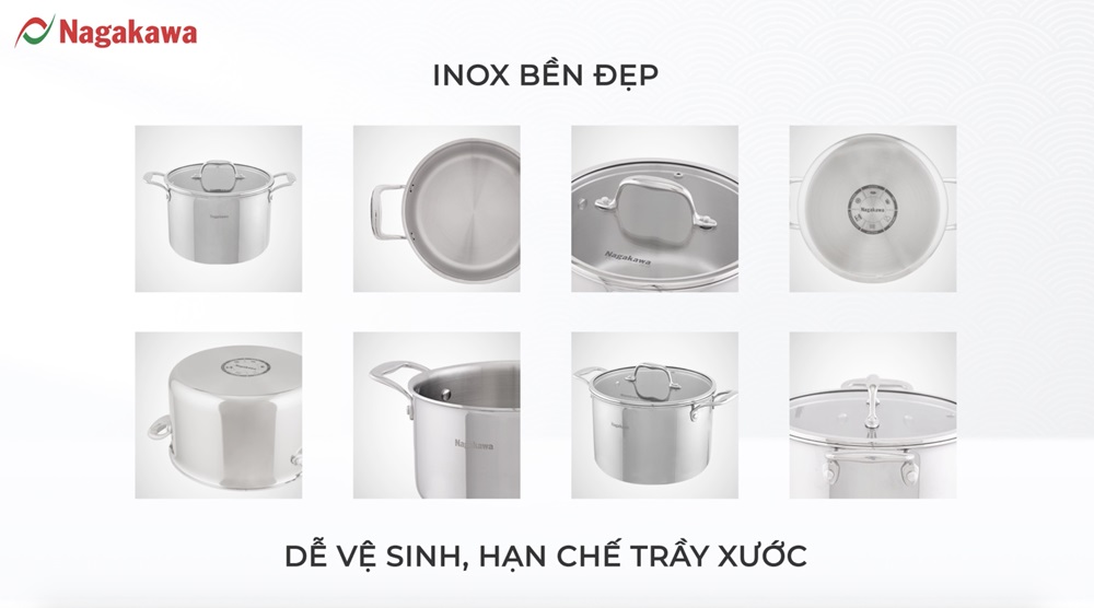 • Tính năng nổi bậtBộ nồi inox đa lớp toàn phần Nagakawa Haru NAG1355 là tuyệt phẩm  của sự an toàn trong từng chất liệu, tỉ mỉ trên từng đường nét, tận tâm trong mọi thiết kế, đơn giản nhưng vô cùng tinh tế, thỏa mãn mọi nhu cầu nấu nướng, mang đến cho người dùng những trải nghiệm đầy cảm xúcNằm trong Bộ sưu tập Nồi – Chảo bốn mùa, Bộ nồi inox Nagakawa Haru NAG1355, với “Haru” nghĩa là mùa xuân, một dụng cụ nhà bếp chỉn chu cả về chất lượng và hình thức, mang đến những trải nghiệm hài lòng một cách trọn vẹn cho người đầu bếp.