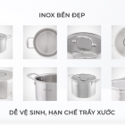 • CẤU TẠO 5 LỚP DÀY DẶNĐiểm nhấn của bộ nồi nằm ở cấu tạo 5 lớp toàn phần dày dặn với sự sắp xếp của 5 lớp kim loại giúp tối ưu hóa hiệu quả của từng chất liệuLớp trong cùng là inox 304, là loại inox cao cấp nhất, không thôi nhiễm chất độc hại kể cả khi đun nấu trên nhiệt độ cao hay dùng lâu năm, đảm bảo an toàn sức khỏe cho người sử dụng, được kiểm định và chứng nhận bởi Viện Dinh Dưỡng - Bộ Y Tế.