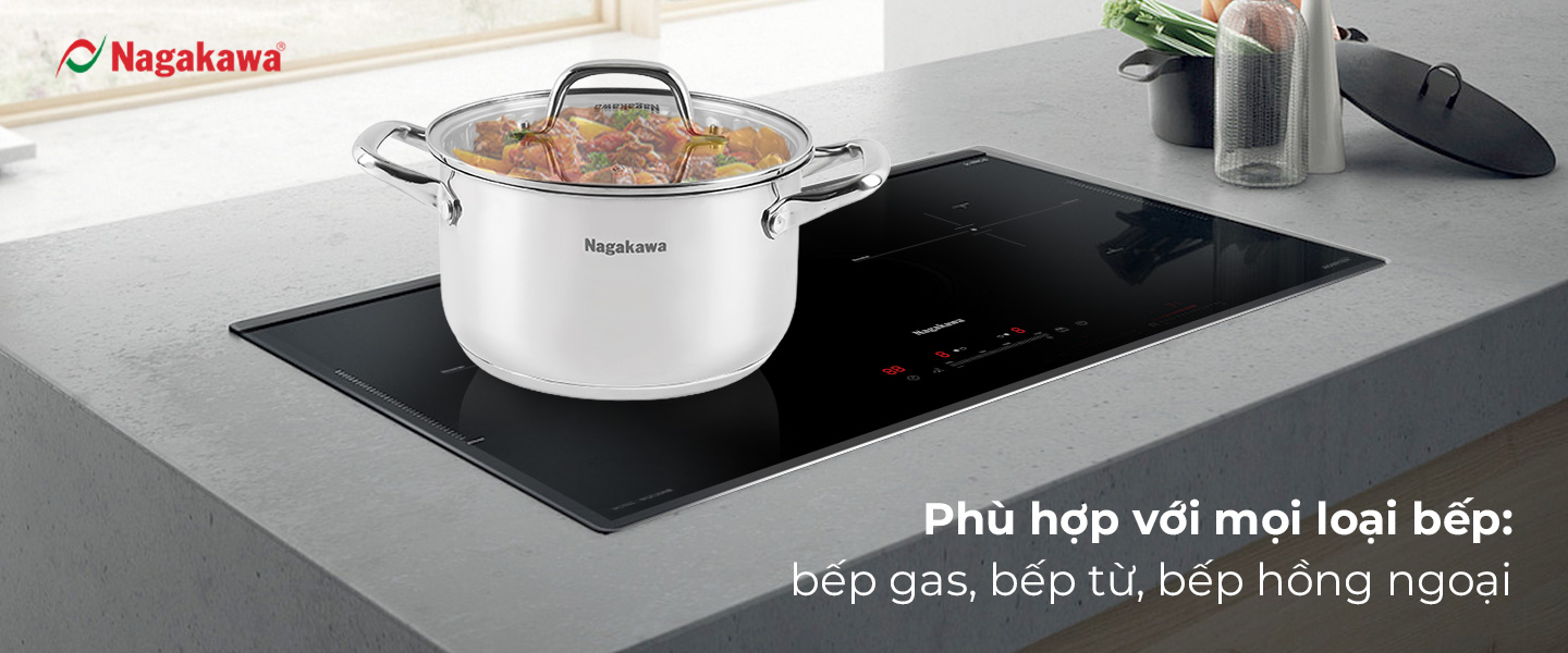 - Hiệu suất bắt từ lên đến 99%, tiết kiệm năng lượng và thời gianBộ nồi inox Nagakawa NAG1360 có đáy từ bắt nhiệt nhanh vượt trội, với hiệu suất bắt từ lên đến 99%.