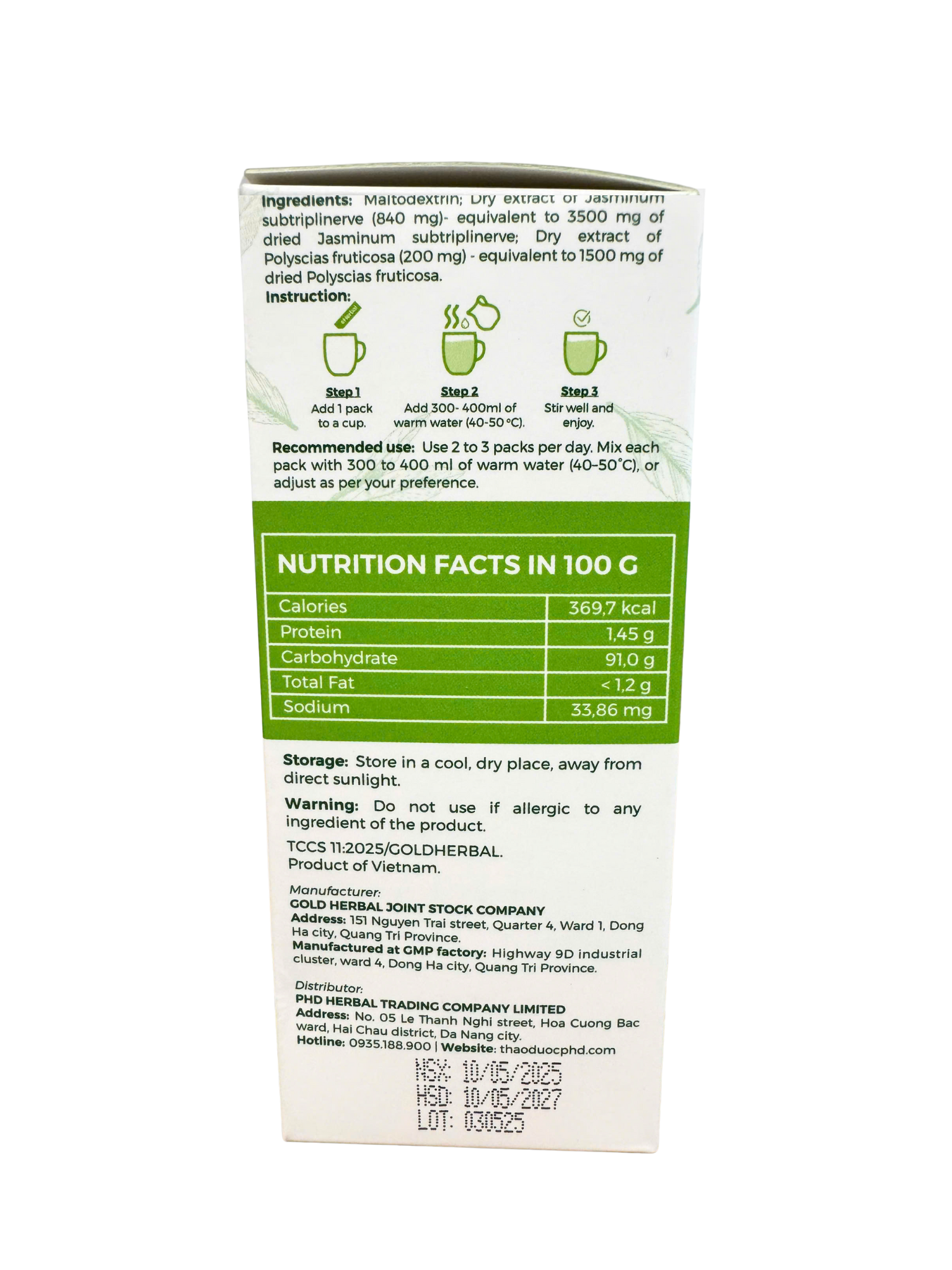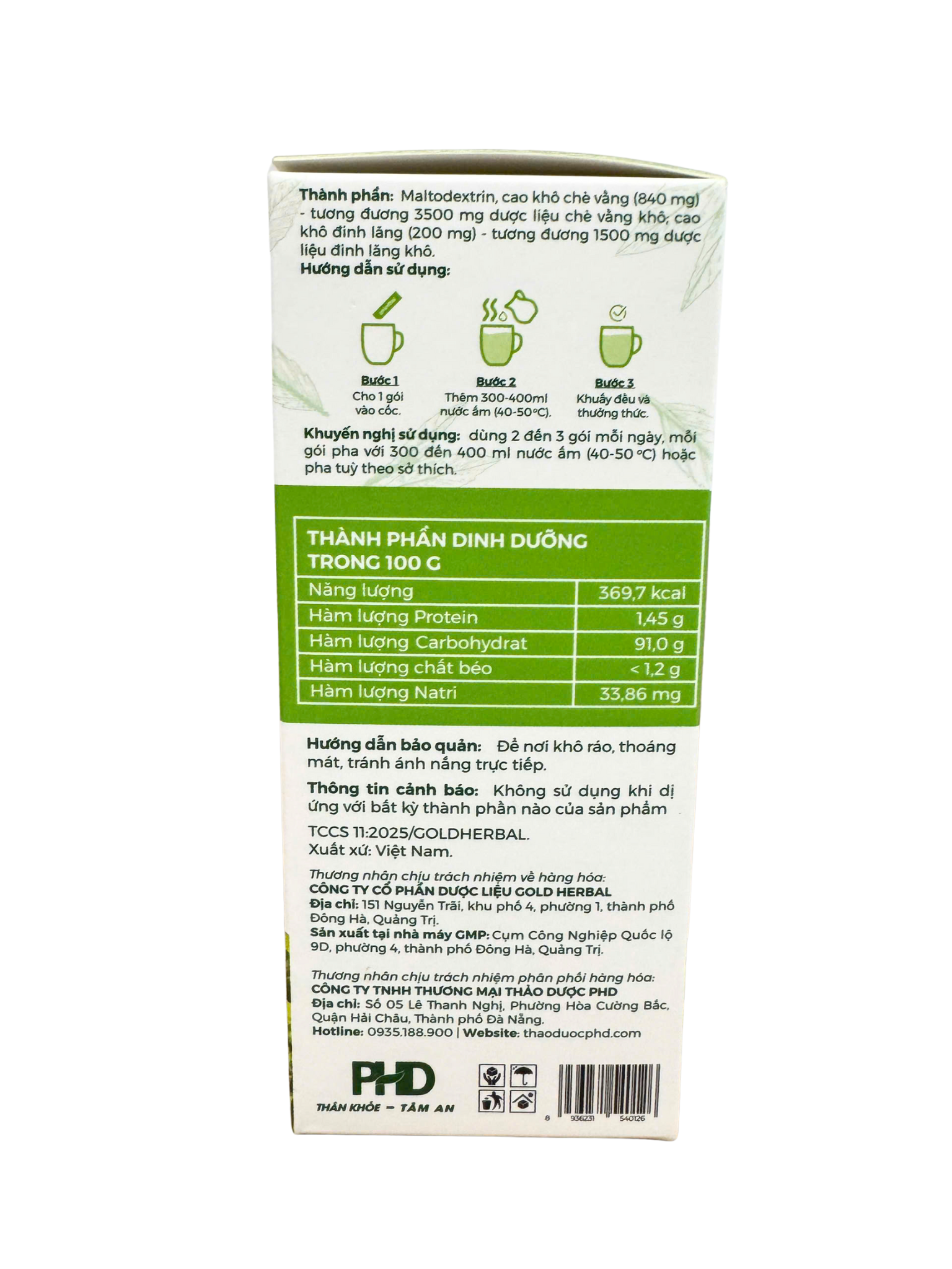 Thành Phần: Maltodextrin, cao khô chè vằng, cao khô đinh lăng