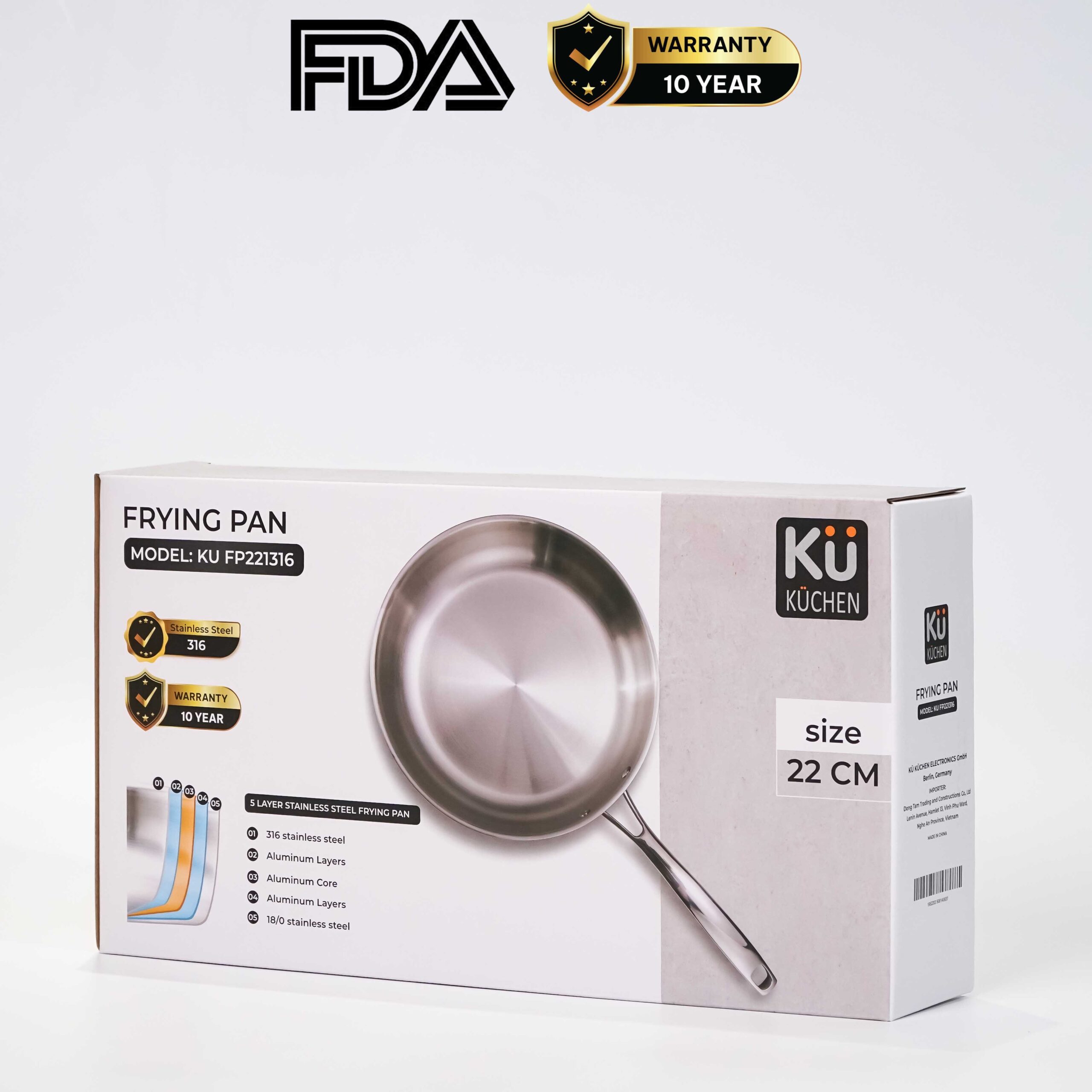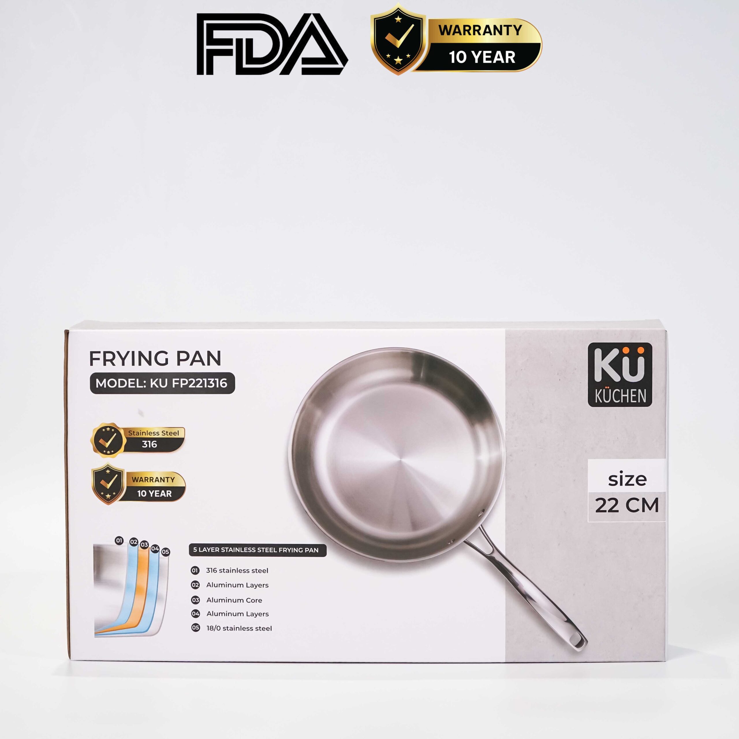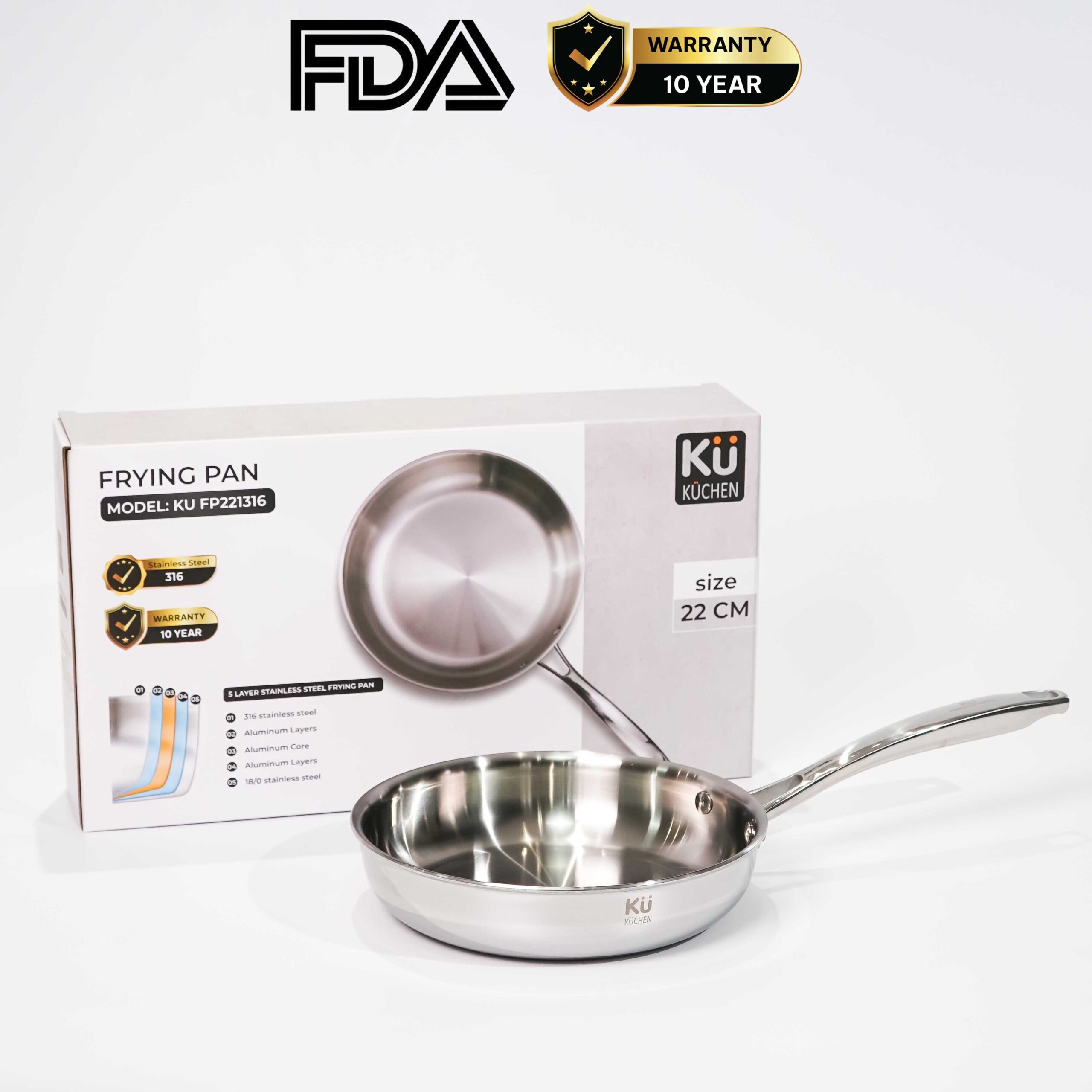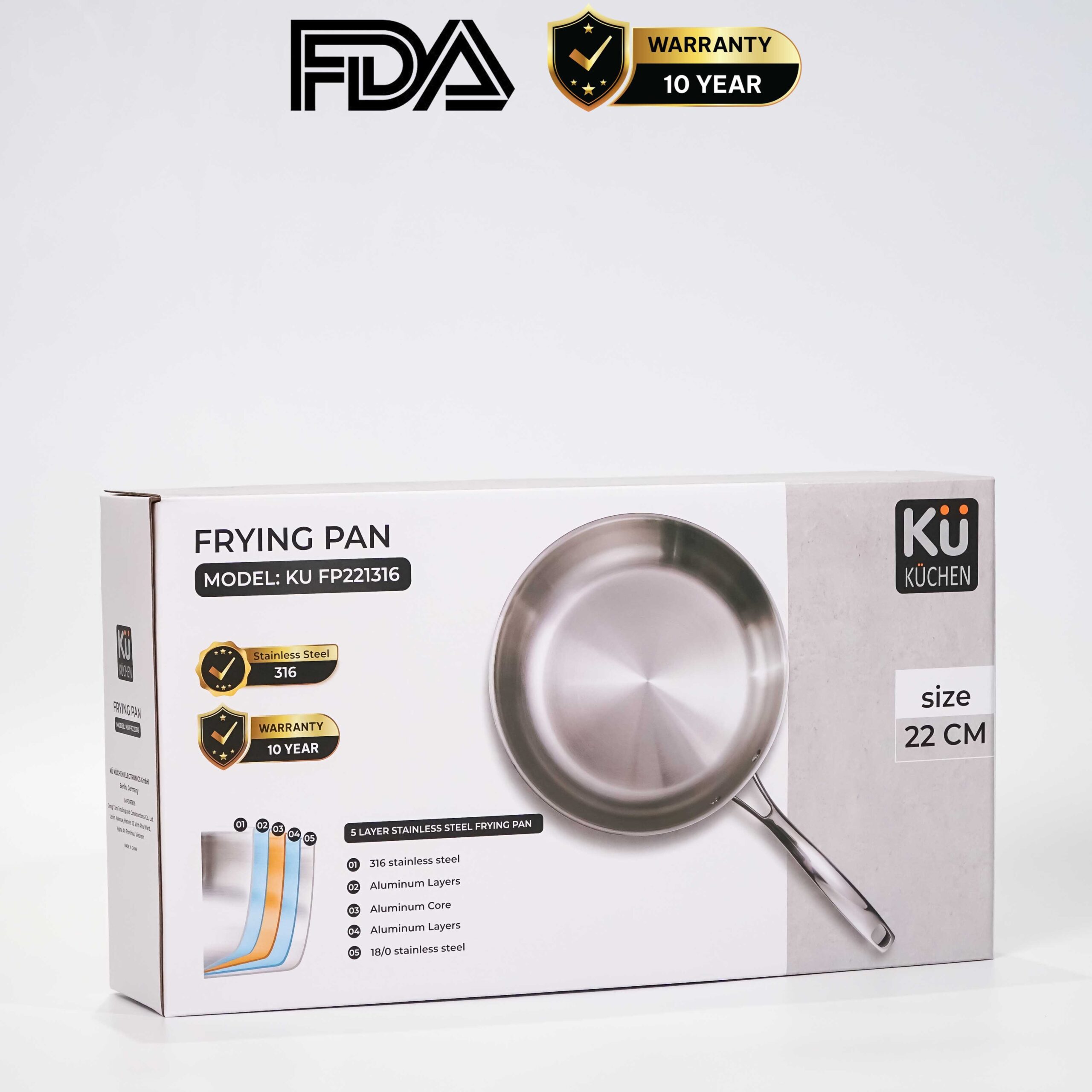 Chảo inox 5 lớp cao cấp KUCHEN KU FP221316 (22 cm)