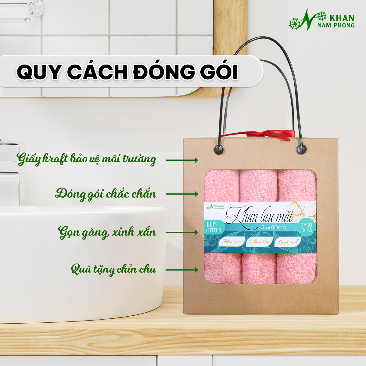 Combo 3 khăn lau mặt/lau đầu NAM PHONG 34x80cm chất liệu 100% Cotton