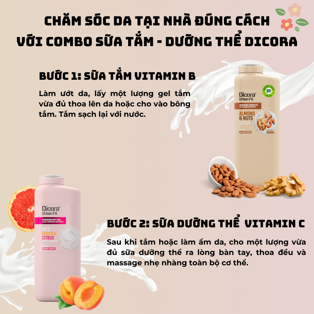 - Tên sản phẩm: Combo 4: Sữa dưỡng thể Dicora Urban Fit Vitamin C và Sữa tắm Dicora Urban Fit Vitamin B
