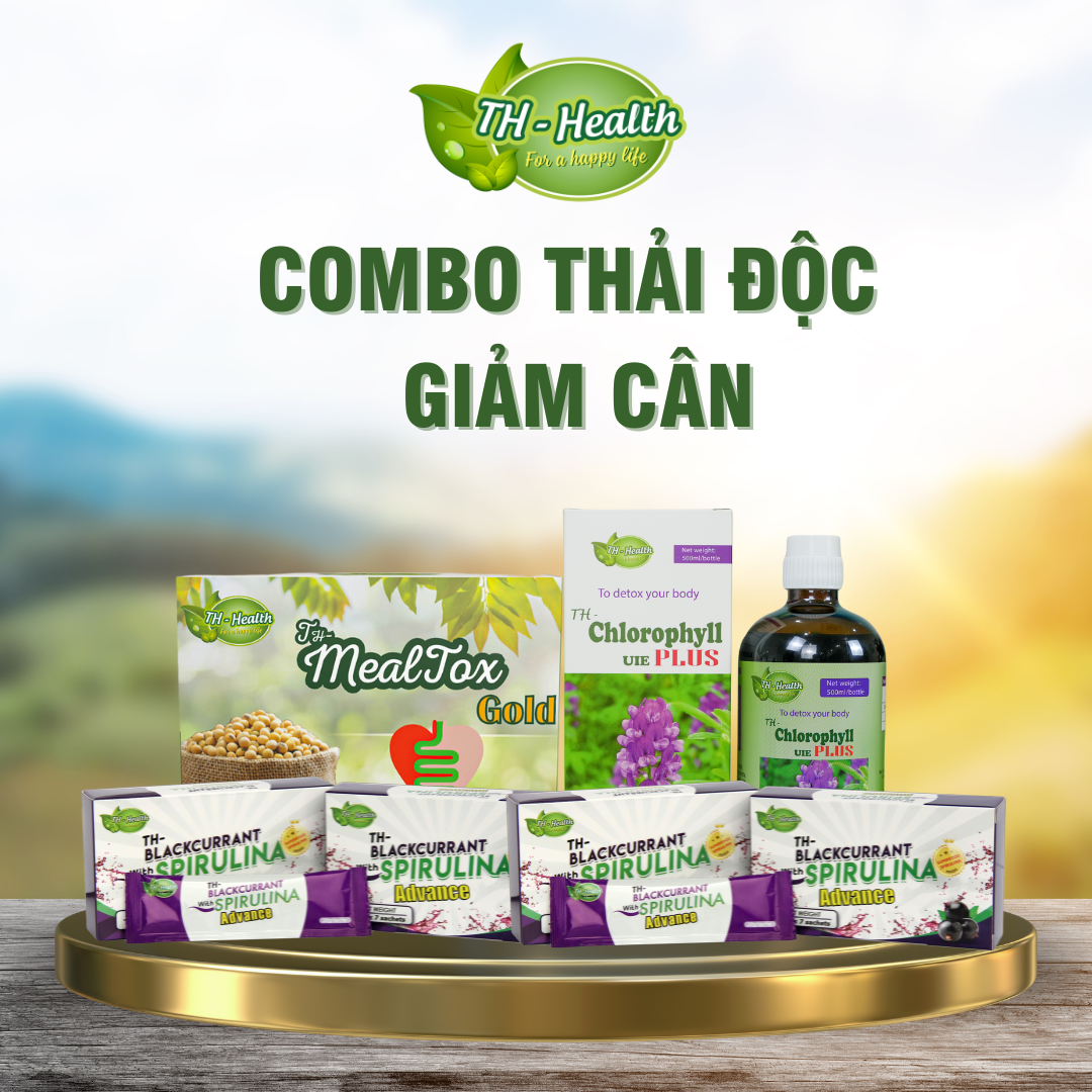 - Combo Thải độc Giảm cân TH HealthThực phẩm bảo vệ sức khỏe TH-Chlorophyll UIE Plus x 01Thực phẩm bảo vệ sức khỏe TH-Mealtox Gold (30 gói) x 01Thực phẩm bảo vệ sức khỏe TH-Blackcurrant with Spirulina Advance x 042.