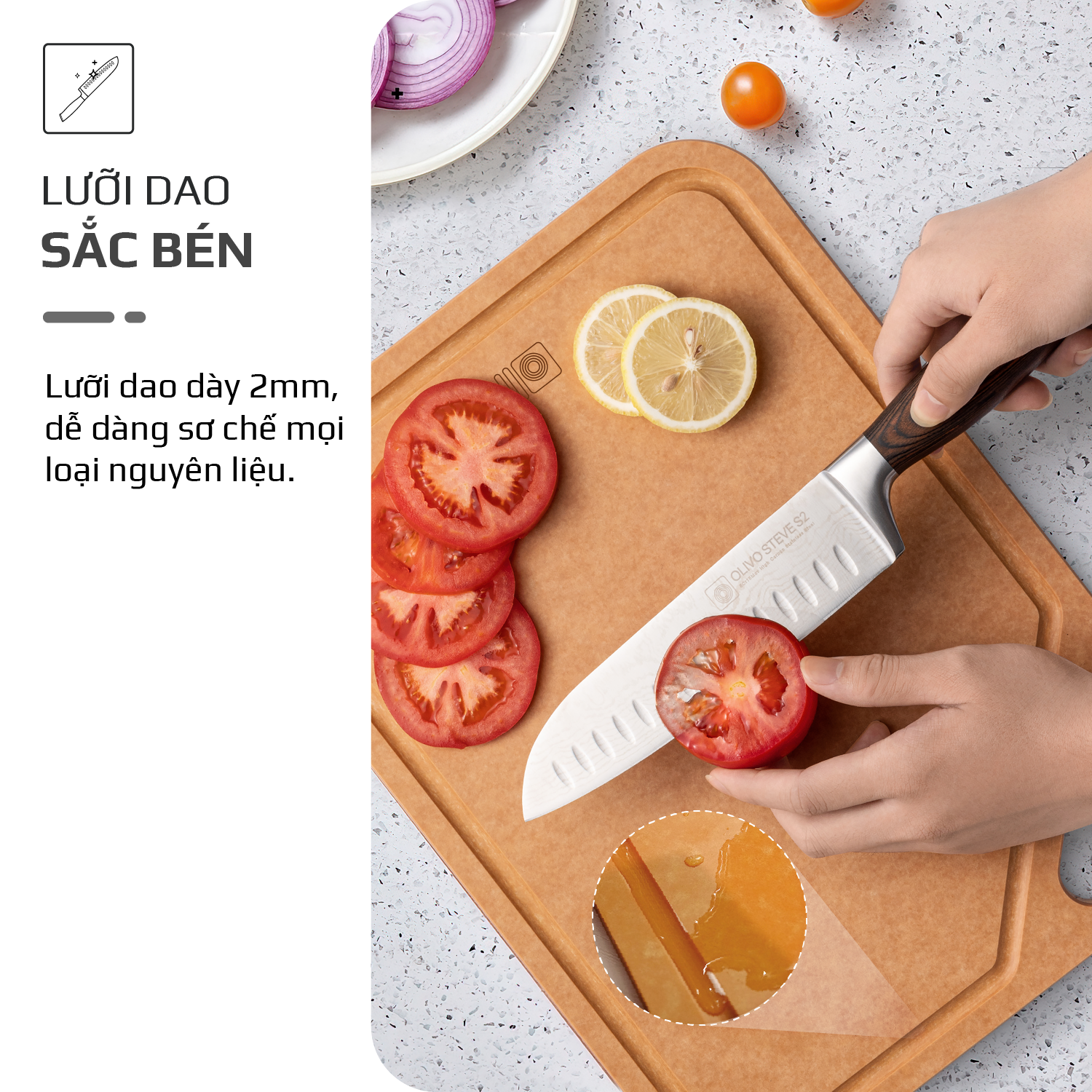 - Vật liệu cao cấp: lưỡi dao Thép Carbon cao 5Cr15Mov kết hợp chuôi gỗ Hồng bền bỉ, chống gỉ sét.