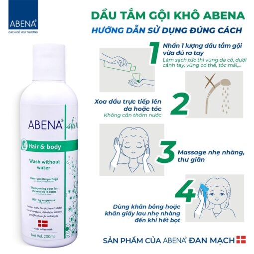- Tên sản phẩm: Dầu Gội tắm Khô Abena Hair & Body Wash 200mlXuất xứ: Đan MạchThương hiệu: AbenaQuy cách đóng gói: 200mlHương: Bạc hà thơm mát dịu nhẹĐặc tính: Không cần sử dụng nước các điều kiện hạn chế sử dụng nước.