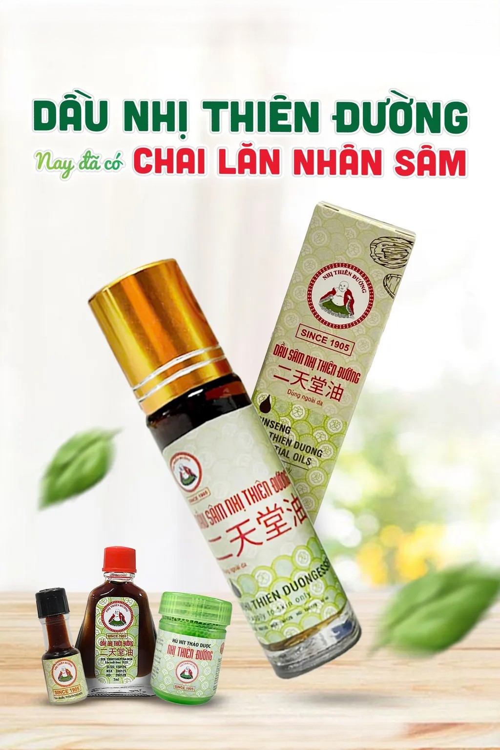 - DẦU LĂN SÂM NHỊ THIÊN ĐƯỜNG - DI SẢN 100 NĂMDầu Nhị Thiên Đường là một sản phẩm dầu thảo dược truyền thống, được sản xuất theo công thức gia truyền của gia đình họ Vi người.