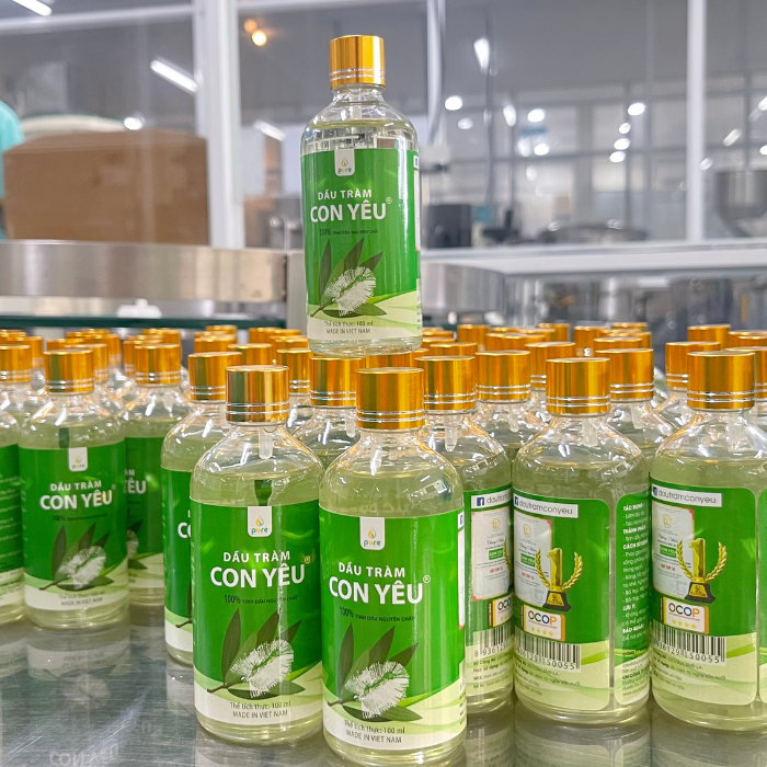 - Dầu tràm Con Yêu được chiết xuất 100% từ lá tràm giúp phòng chống cảm lạnh, trúng gió, hỗ trợ giảm các cơn đau ở khớp tay và chân.