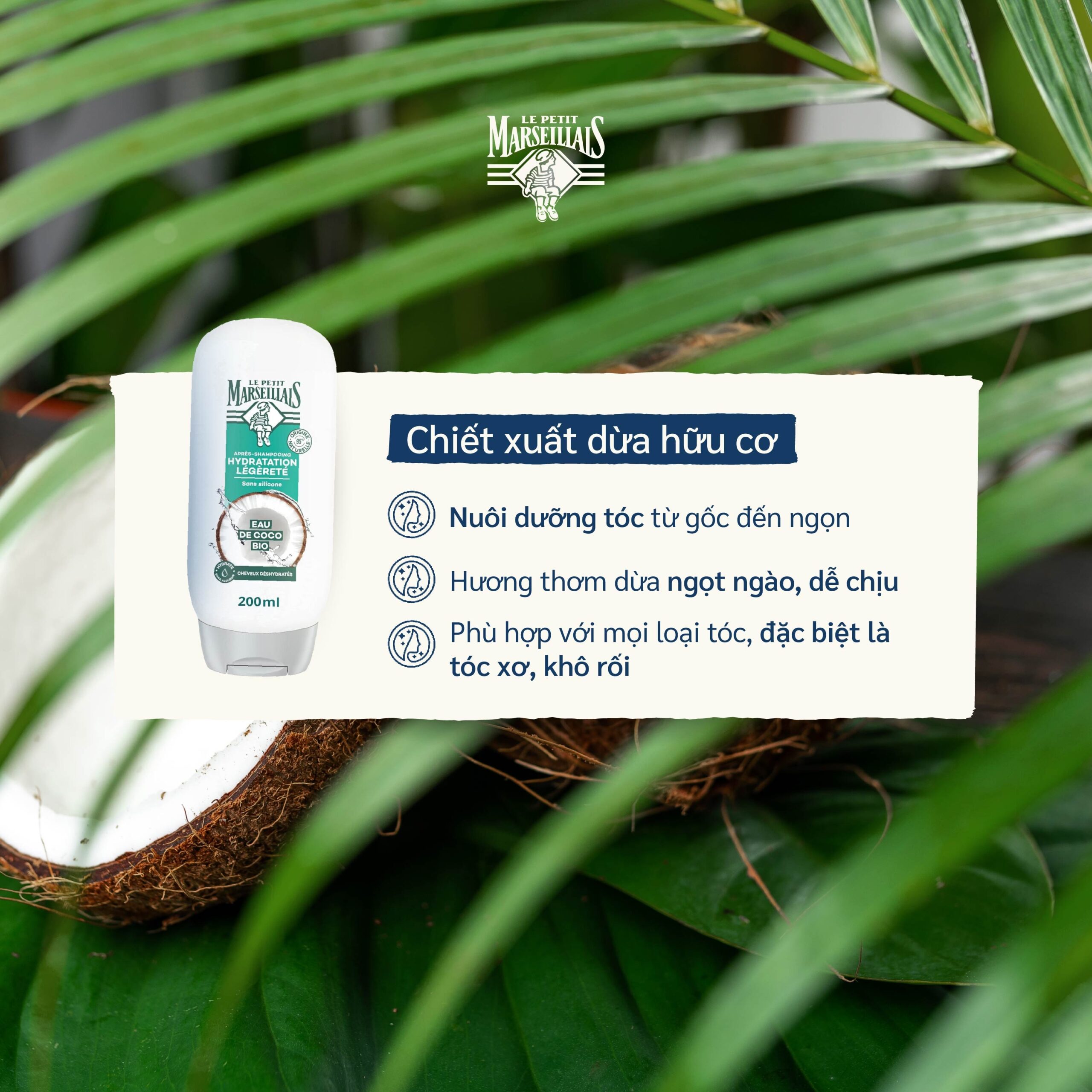 Dầu Xả Dưỡng Tóc Le Petit Marseillais Dưỡng Ẩm Dịu Nhẹ Với Nước Dừa Hữu Cơ 200ml