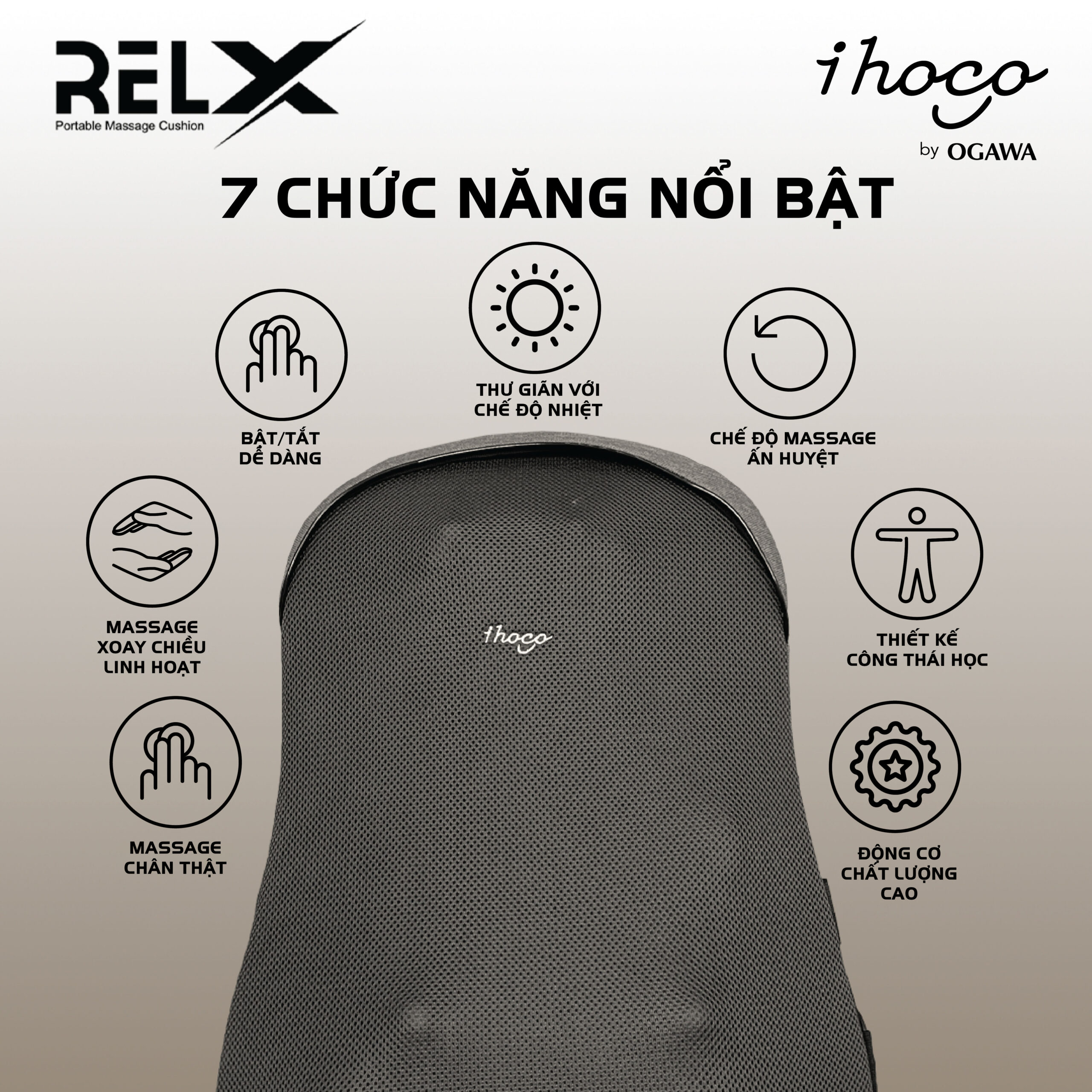 RelX được thiết kế trọng lượng nhẹ và tiện lợi, dễ dàng đặt tại các vị trí như ghế sofa, giường ngủ, ghế văn phòng, thậm chí cả trong xe hơi (kèm đầu chuyển đổi), giúp bạn tận hưởng massage sảng khoái mọi lúc cần.