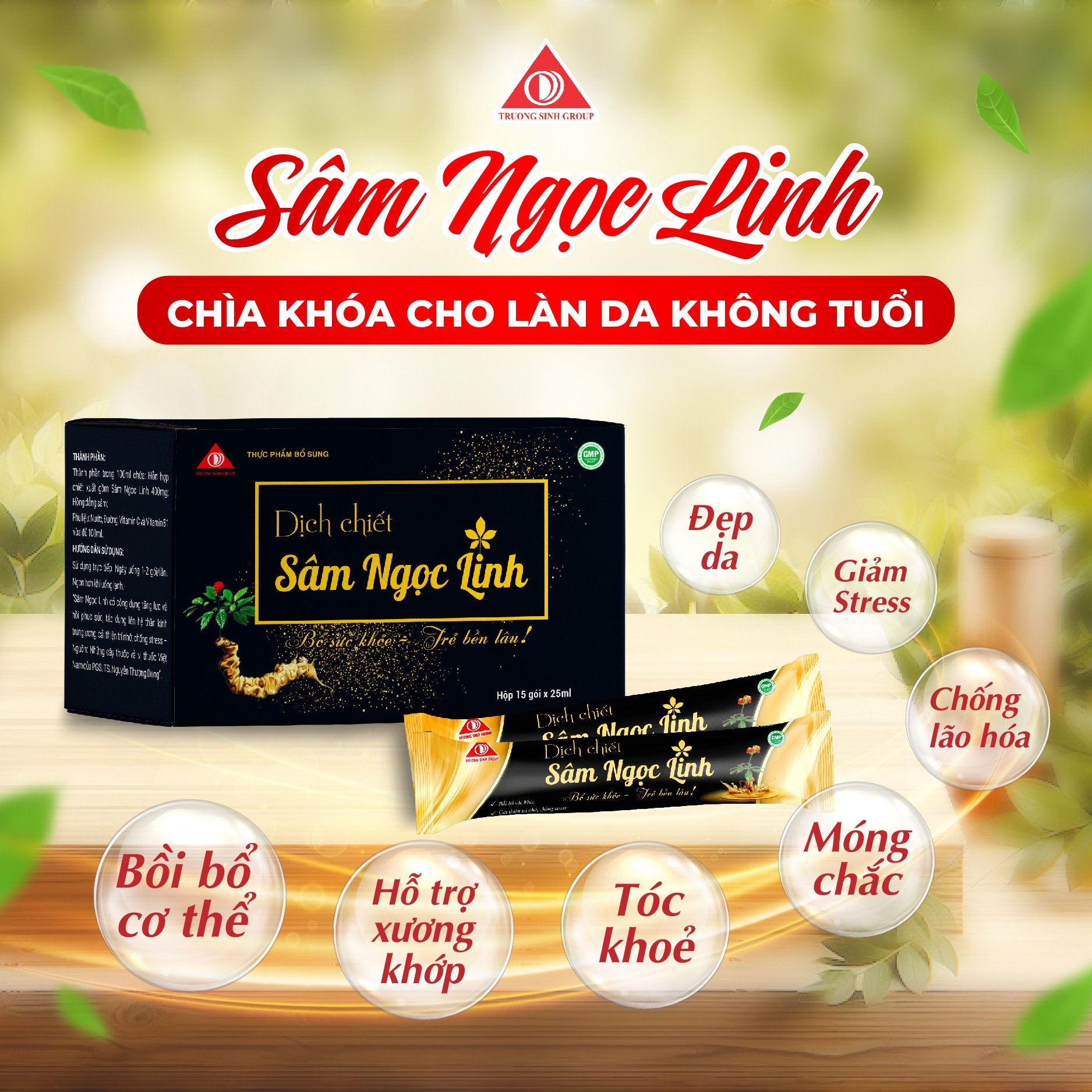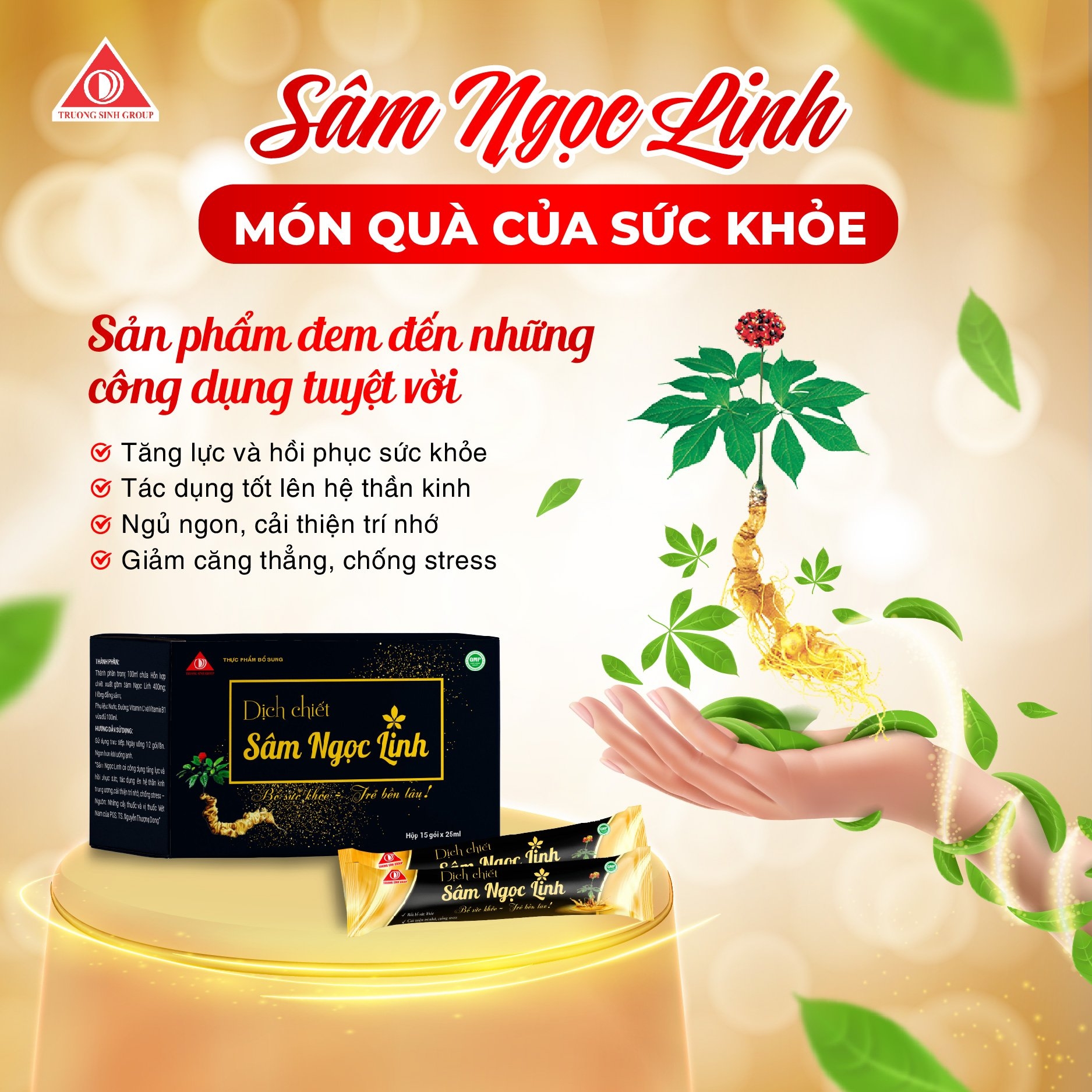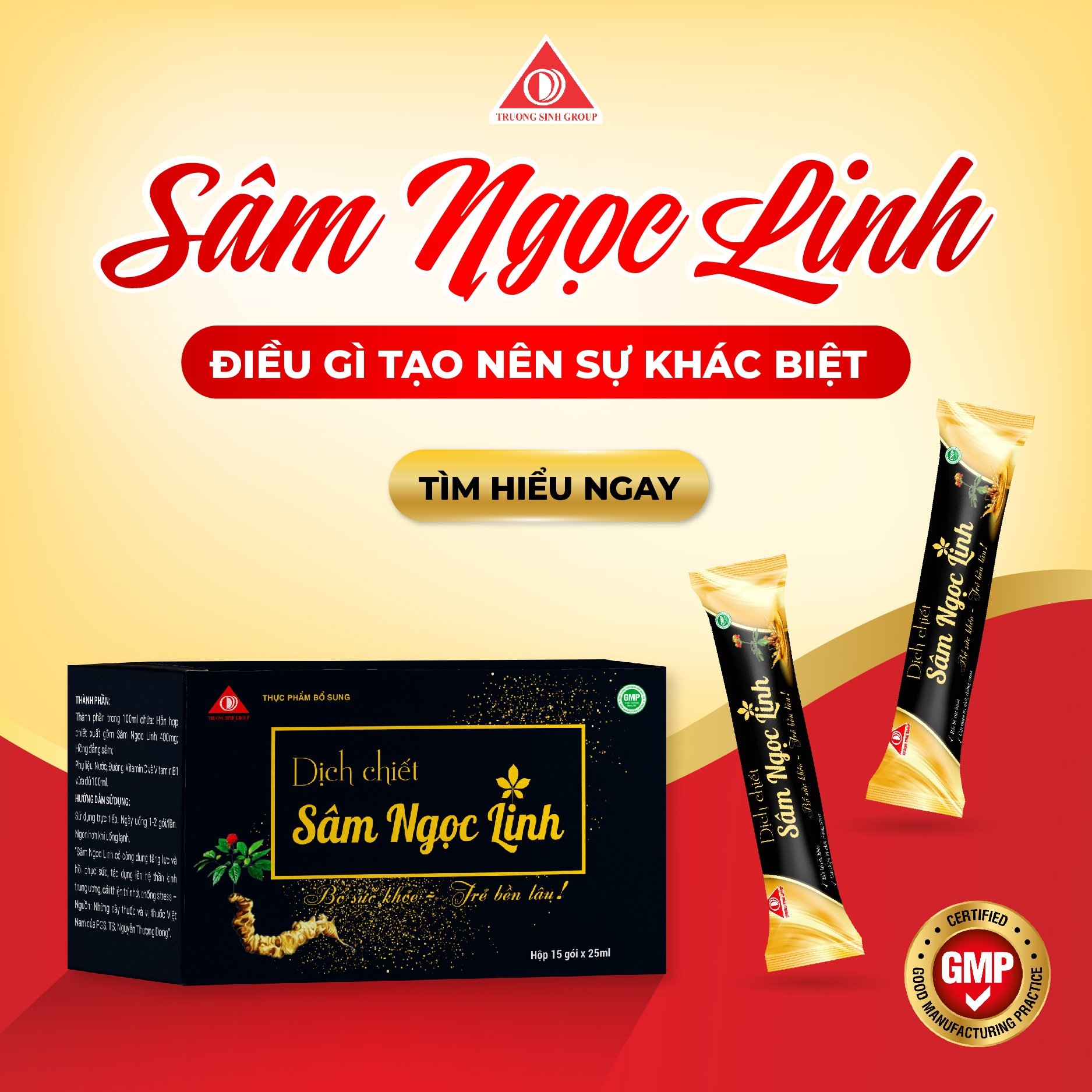- Mô tả: Sản phẩm được bào chế từ Sâm Ngọc Linh, Hồng đẳng sâm, sản xuất trên dây chuyền đạt chứng nhận GMP của Cục An Toàn Thực phẩm Bộ Y tế.