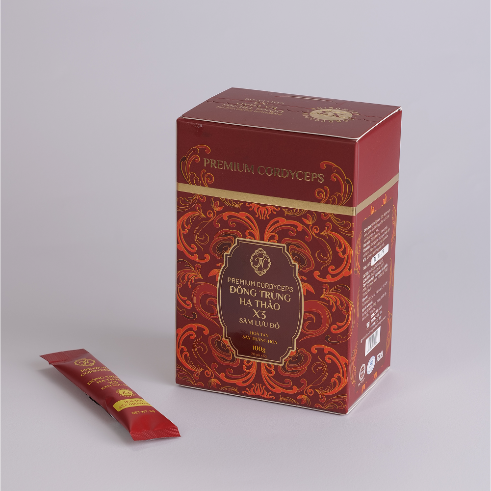 1. Tên sản phẩm: Đông trùng hạ thảo X3 Sâm Lựu Đỏ