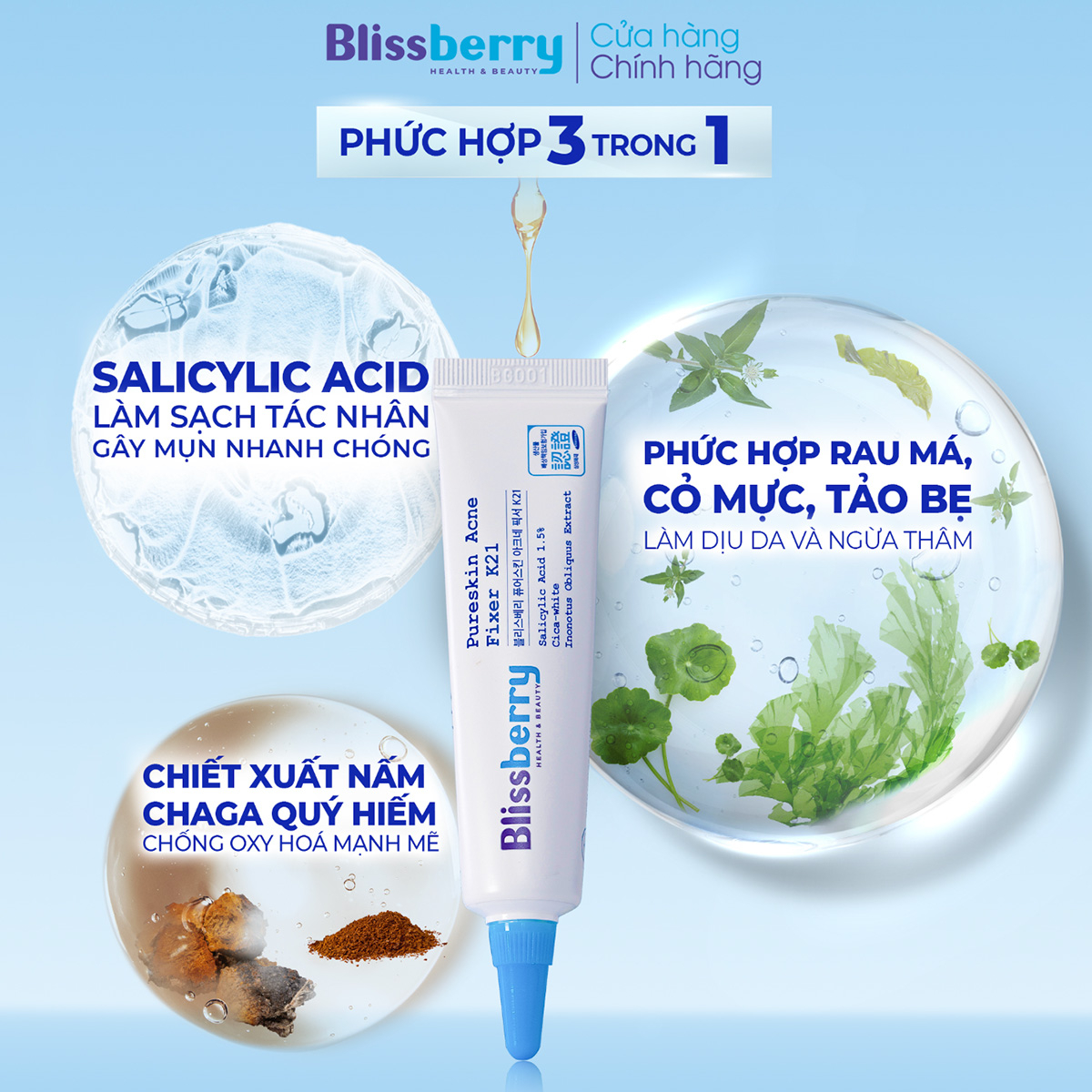 Gel bôi mụn giảm sưng & mờ thâm Blissberry 15ml