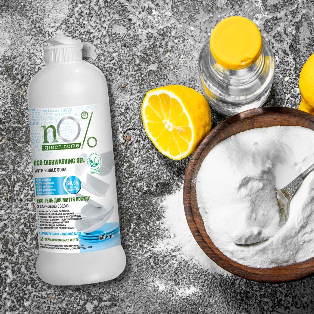 Gel rửa chén bát và rau, trái cây vỏ cứng nO% Green Home Eco với Baking Soda (500ml)