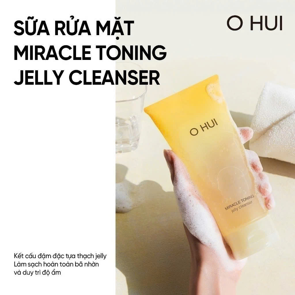 - Sữa rửa mặt dạng gel ẩm mịn giúp sáng da căng bóng chứa AHA/PHA O HUI Miracle Toning Jelly Cleanser 160ml với công dụng: - Với thành phần tự nhiên và đa dạng (Vitamin C, PHA/AHA, Hyaluronic Acid - HA) giúp cho làn da trở nên bừng sáng, mịn màng sau khi sử dụng.