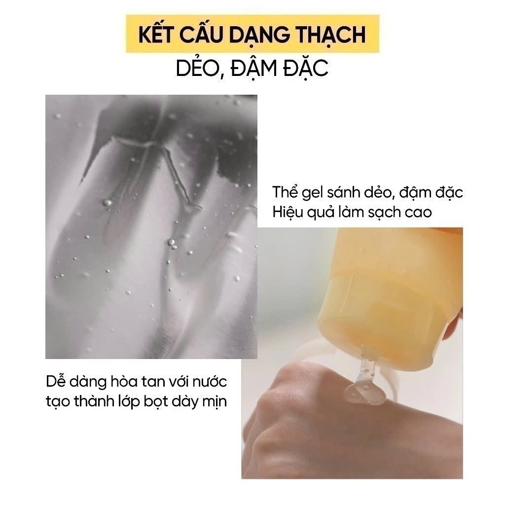 - - Với thể gel jelly sánh dẻo khi hòa tan với nước sẽ cho ra bọt dày mịn làm sạch sâu và loại bỏ vùng da chết hiệu quả hơn.
