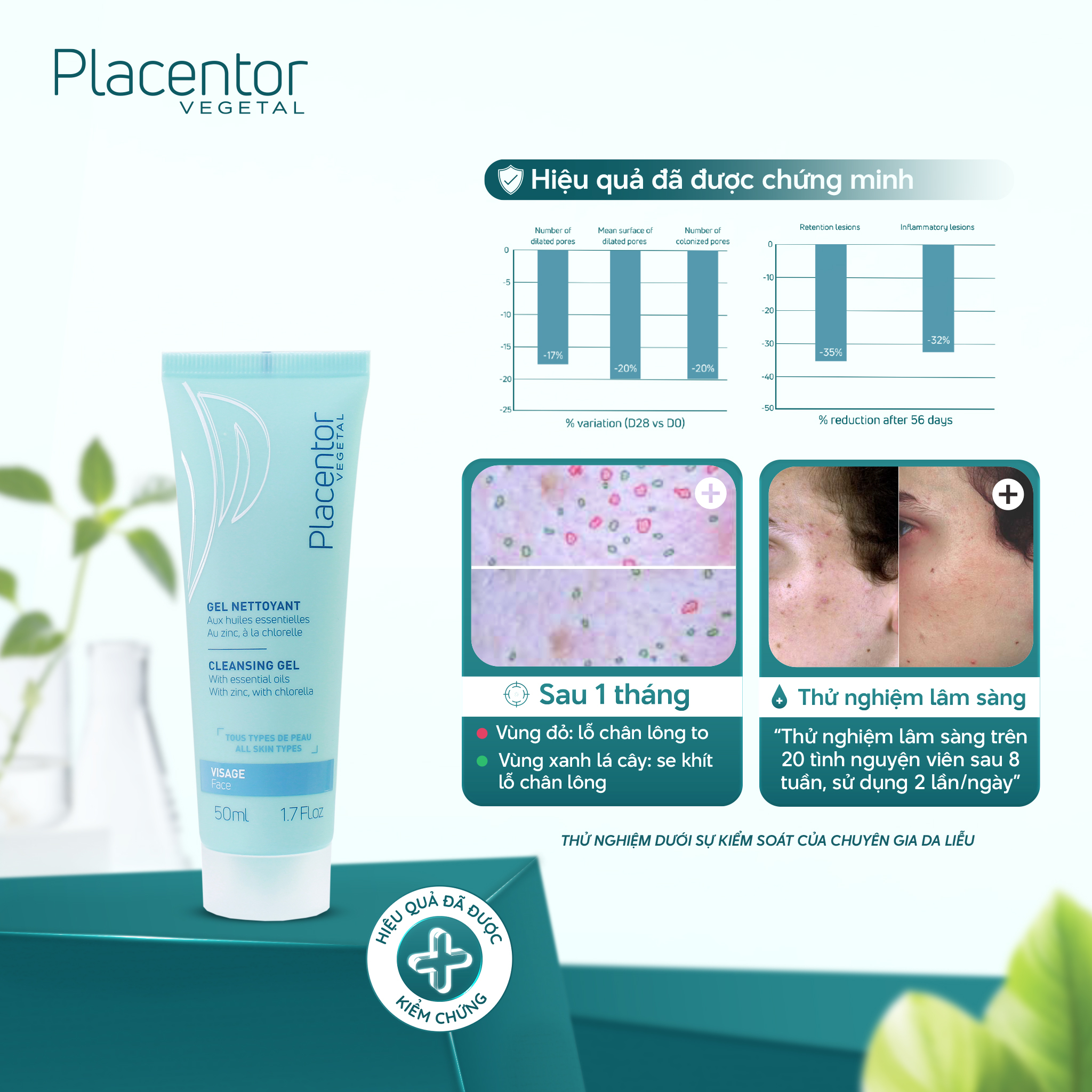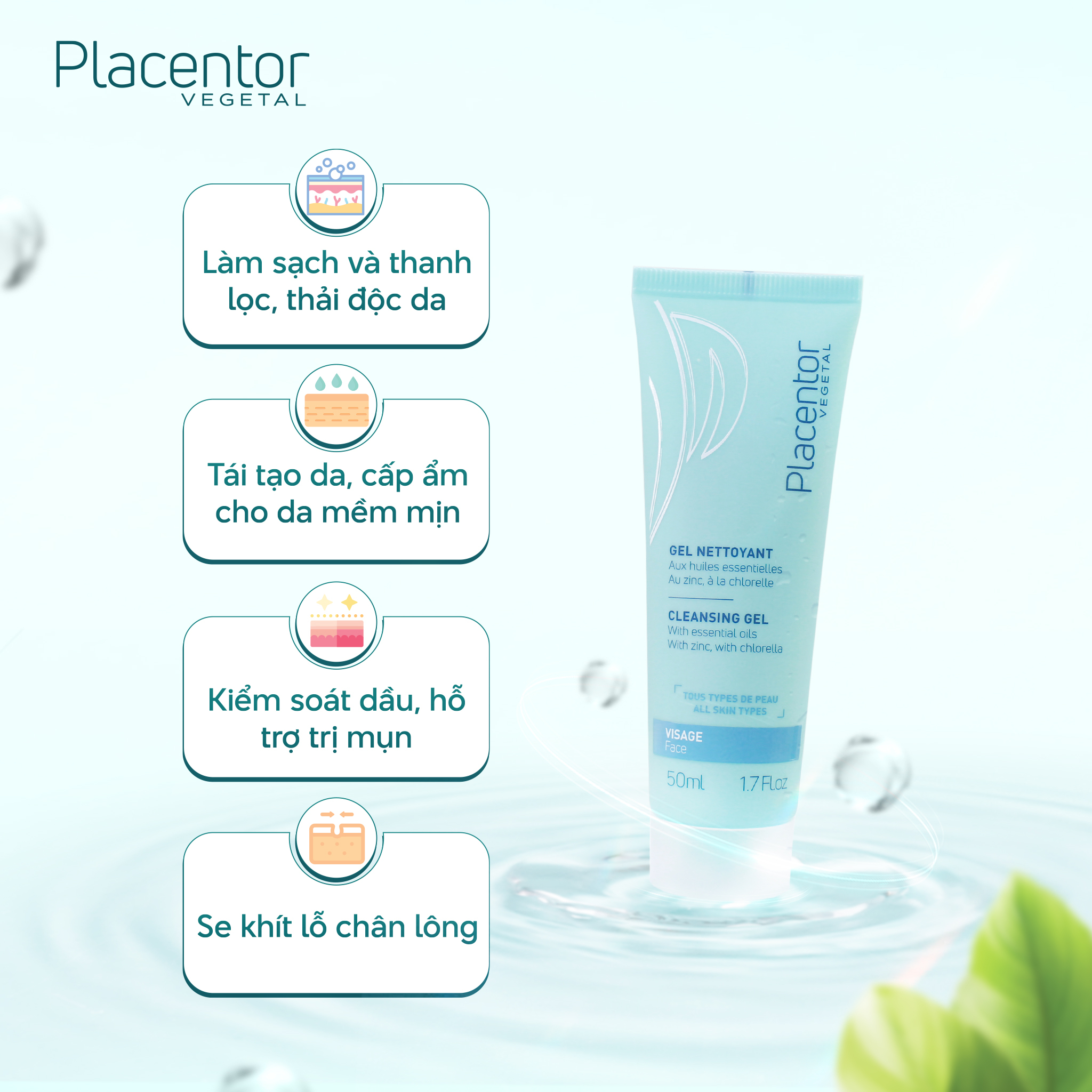 - Gel rửa mặt dành cho mọi loại da – Cleansing GelGel rửa mặt Placentor Vegetal Cleansing Gel với công thức đột phá giúp làm sạch sâu và giữ ẩm với chiết xuất tinh dầu hương thảo và oải hương bên trong.