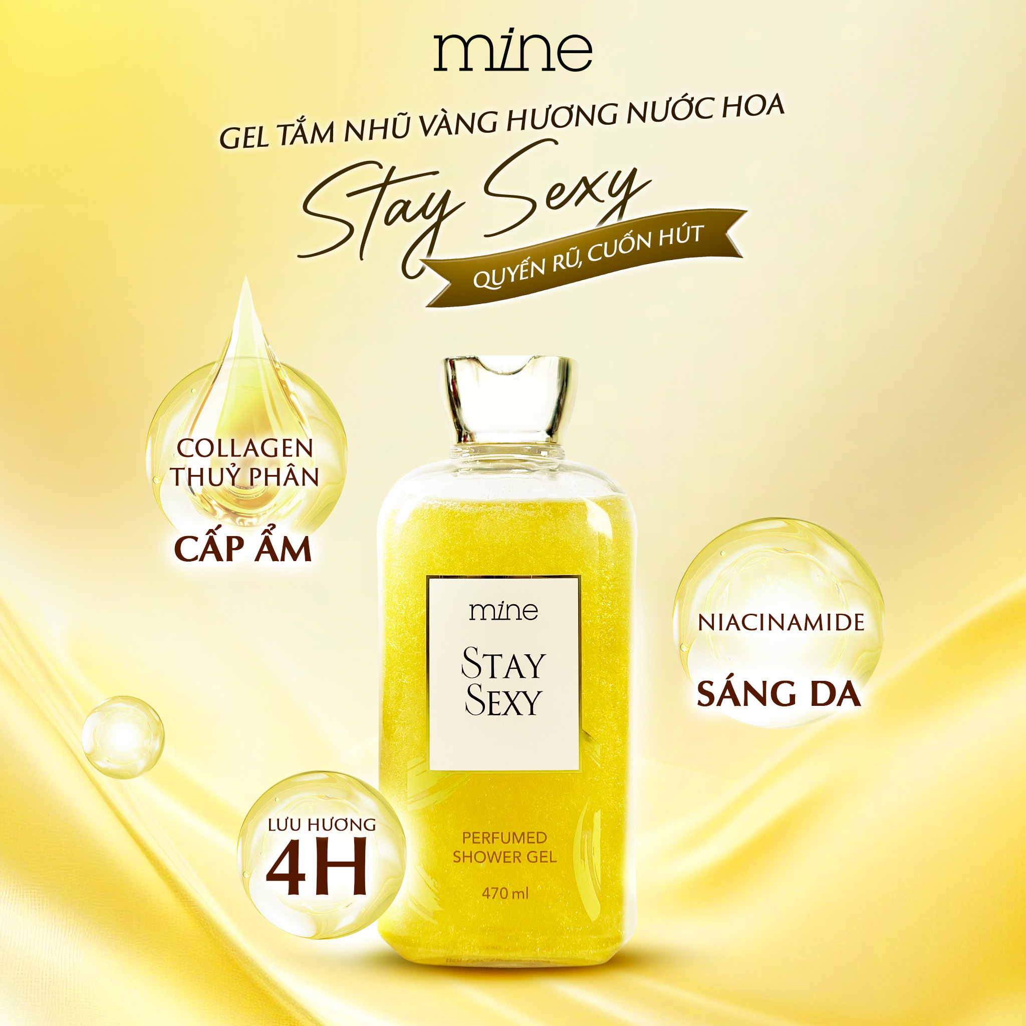 Gel tắm trắng nhũ vàng nước hoa Mine Stay Sexy 470ml