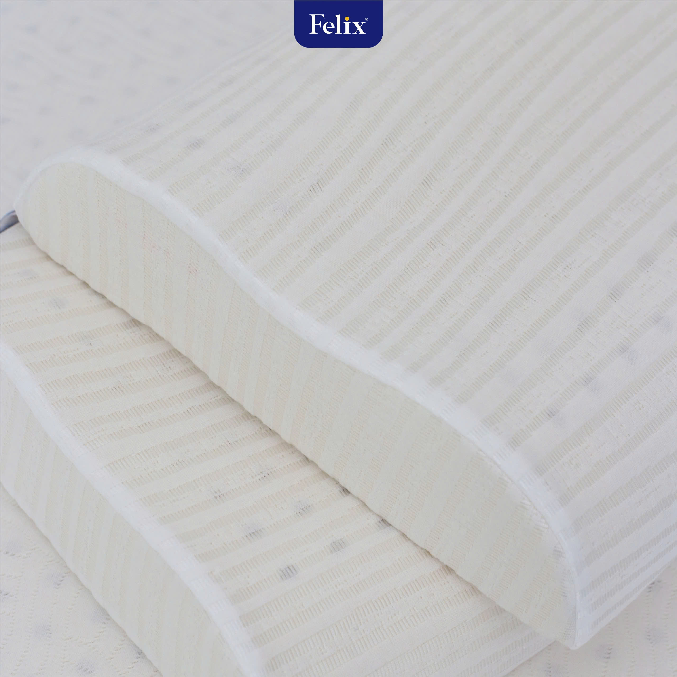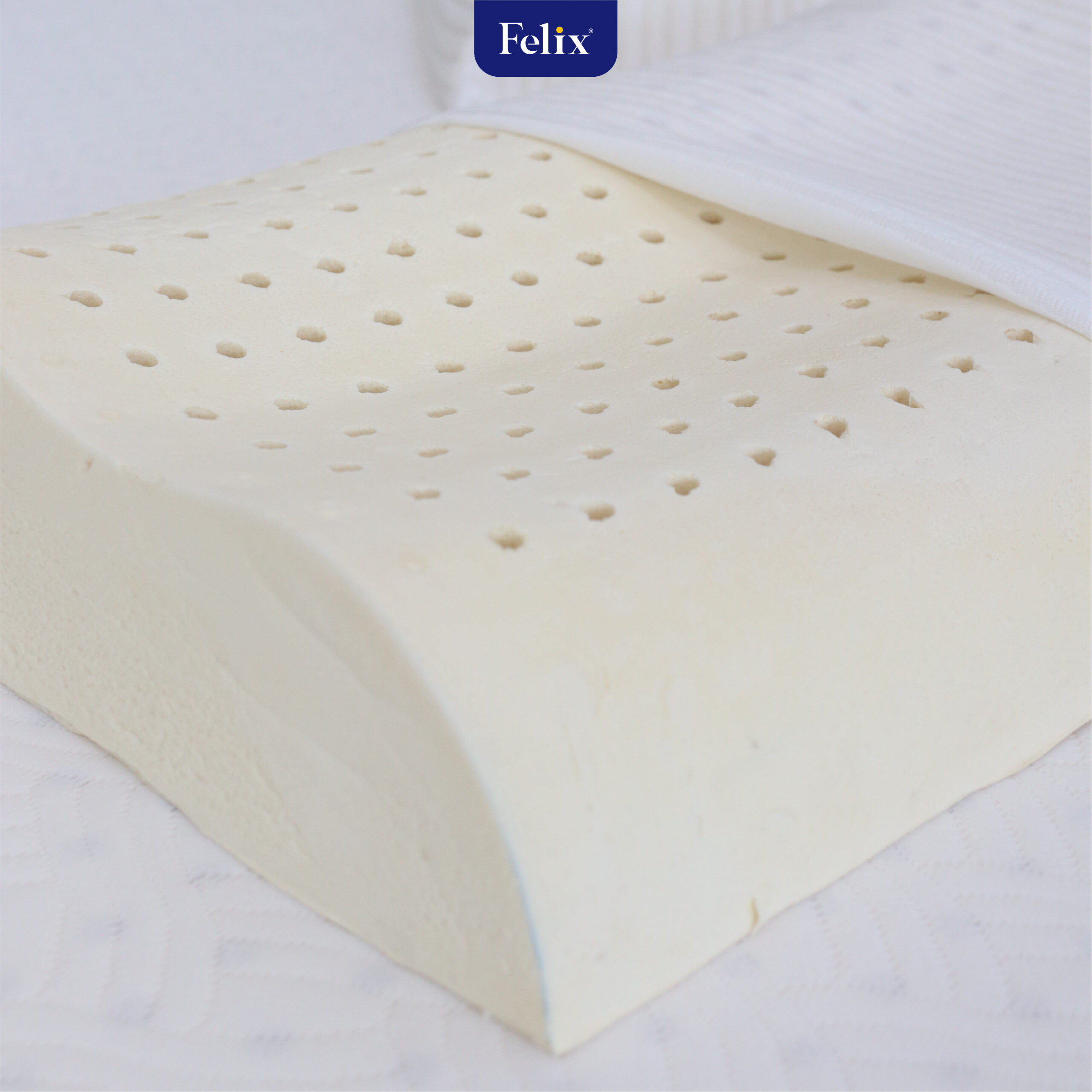 - Gối cao su Felix - Lượn sóng WaveMã sản phẩm: PWMô tả:+ Ruột gối 100% cao su thiên nhiên màu ngà tự nhiêncủa cao su+ Áo gối: gấm thun trắng, xanh, xám, định lượng 180g+ Cấp độ cứng xốp gối+ Qui cách: 38x56x10cm (đầu thấp cao 8cm)Bao bì: Bao ngoài PE + vải không đẹt trắng xanh theo thiết kế nhận diện.