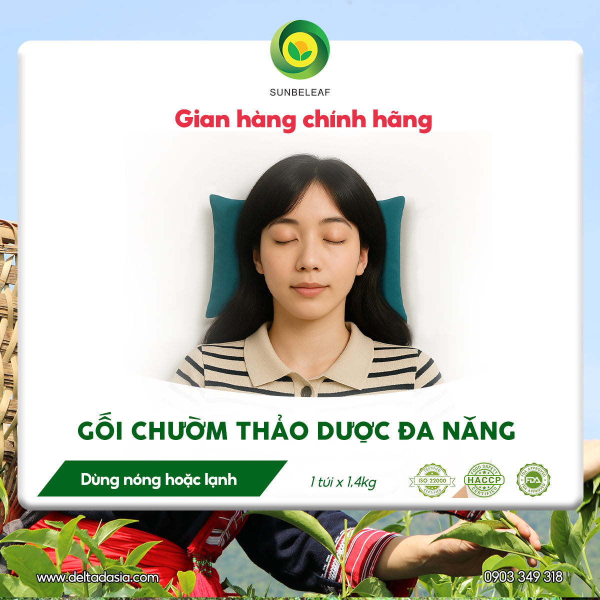 - Giới thiệu sản phẩmGối chườm thảo dược Sunbeleaf có thành phần được bào chế từ các loại thảo dược thiên nhiên gồm Thảo Quyết Minh, Quế Chi, Thiên Niên Kiện, Đại Hồi, Tiểu Hồi, Mạn Kinh Tử và nhiều thảo dược quý khác, gối chườm thảo dược Sunbeleaf là giải pháp lý tưởng dành cho những ai thường xuyên đau mỏi lưng, vai, gáy hoặc bị tê cứng do ngồi lâu, ít vận động.