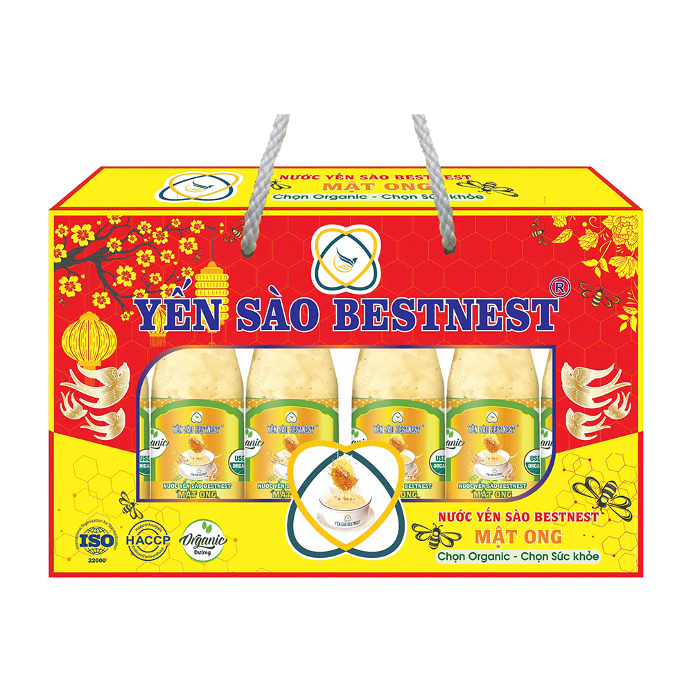 Mô tả sản phẩm Nước yến sào BESTNEST Mật ong là dòng nước giải khát cao cấp chứa thành phần yến sào mang lại nhiều lợi ích sức khoẻ cho người tiêu dùng, thơm ngon hơn với vị Mật ong và rất tốt cho hệ hô hấp. Sản phẩm phù hợp với nhiều đối tượng, chủ yếu là những người có thói quen chăm sóc cơ thể, ăn uống khoa học, chơi thể thao và sống lành mạnh.