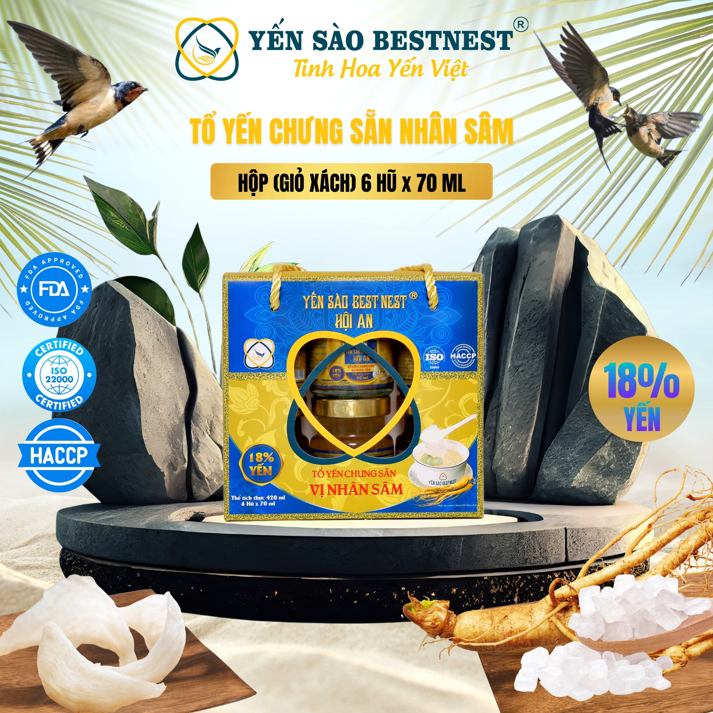 Hộp 6 hũ Tổ yến chưng sẵn BESTNEST HỘI AN 18% Hương Sâm