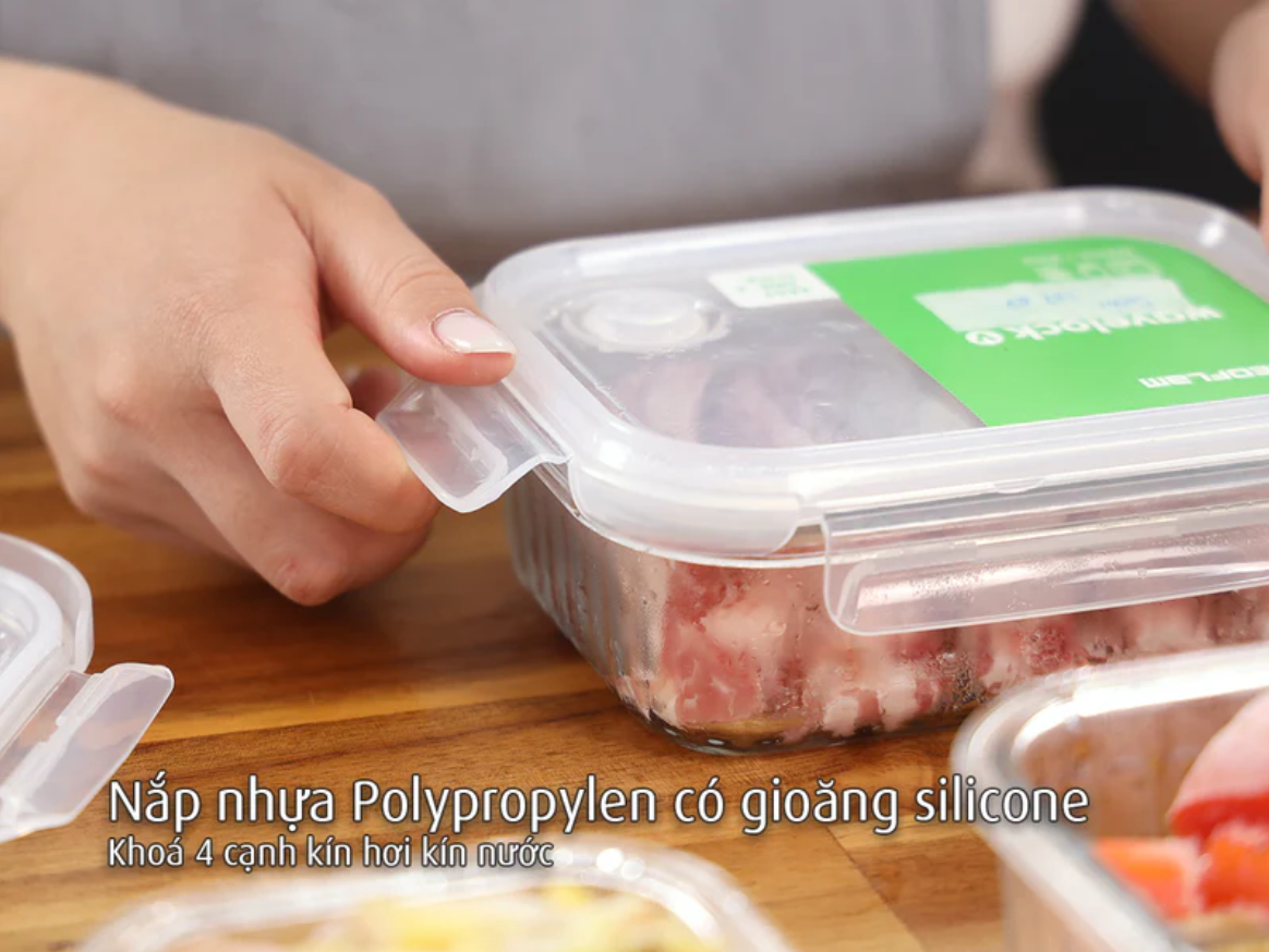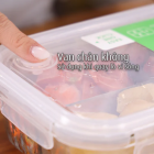 Thiết kế nắp khóa 4 cạnh quen thuộc nhưng được bo góc giúp bạn đóng khóa dễ dàng, kèm theo đó là gioăng silicone Teflon bên trong nên tạo sự kín hơi và chống rò rỉ. Mặt trên của nắp thiết kế lõm xuống nên bạn có thể xếp chồng lên nhau mà không sợ bị trơn ngã. Bên cạnh đó phía trên nắp có lỗ thoát hơi, chỉ cần nhấn nhẹ sẽ làm giảm áp suất và giúp bạn mở nắp dễ dàng.