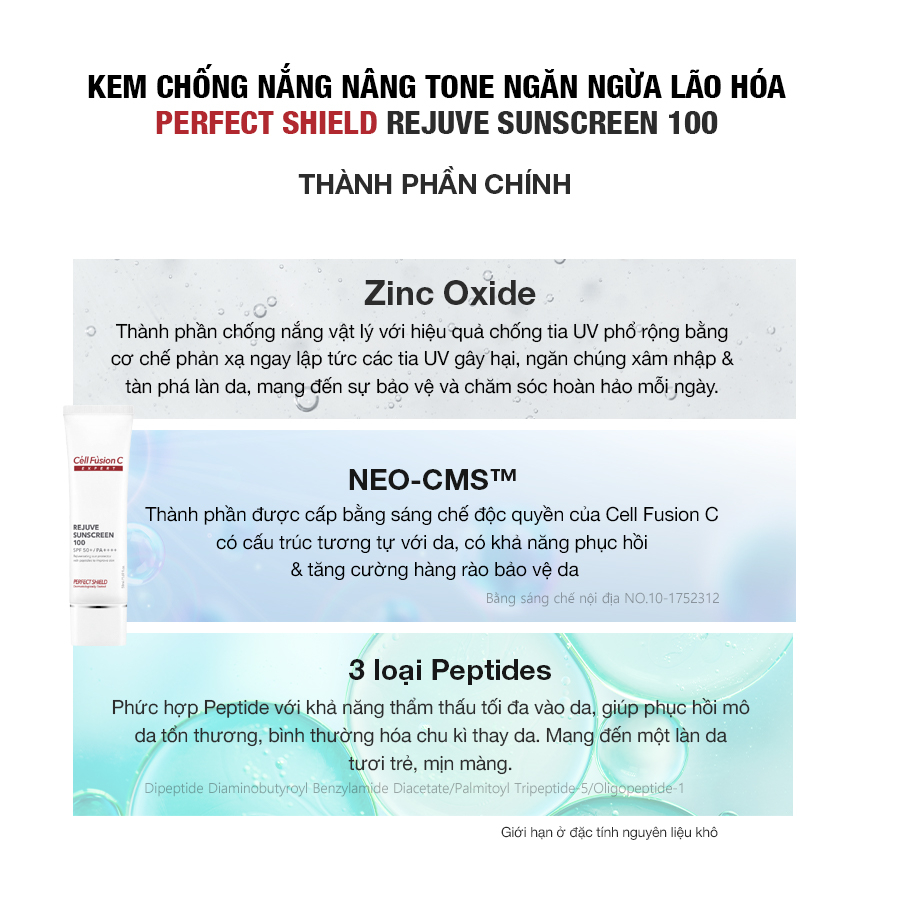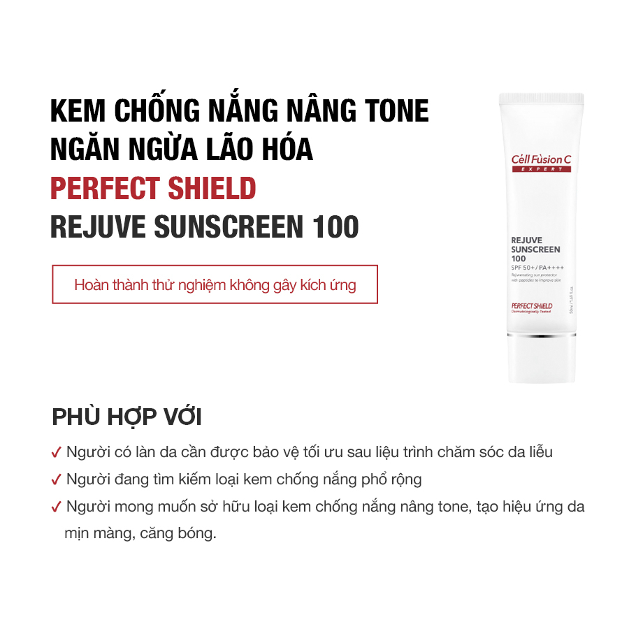 - Tên sản phẩm: Kem chống nắng nâng tone, ngăn ngừa lão hóa 50ml - Cell Fusion C Expert Rejuve Sunscreen 100 SPF50+, PA++++ 2.