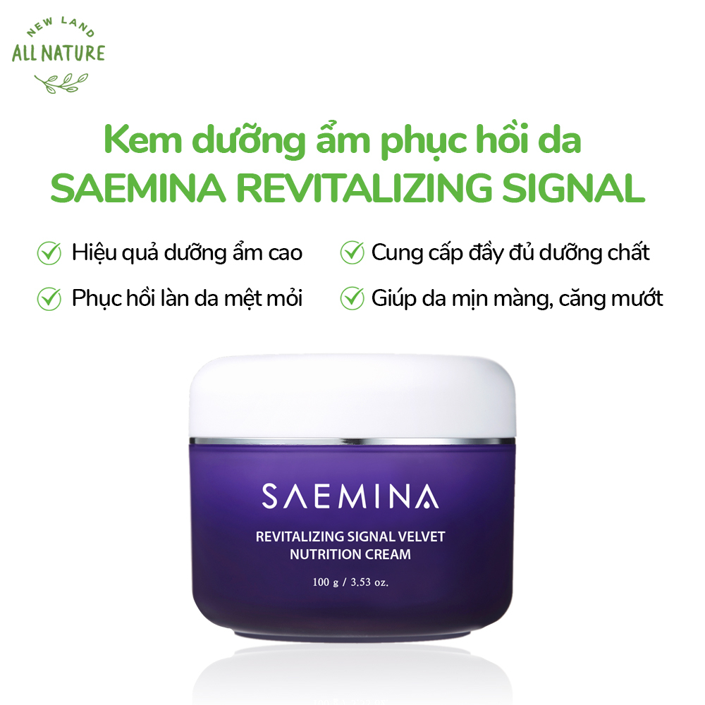 Kem dưỡng ẩm, hỗ trợ phục hồi da Saemina Revitalizing Signal Velvet Nutrition giúp cấp ẩm và cung cấp dưỡng chất cho da mang lại làn da mịn màng.