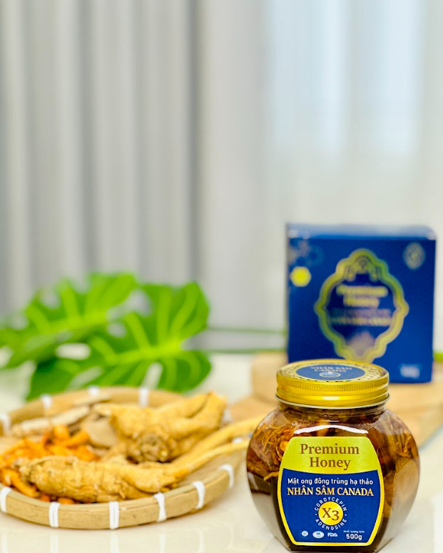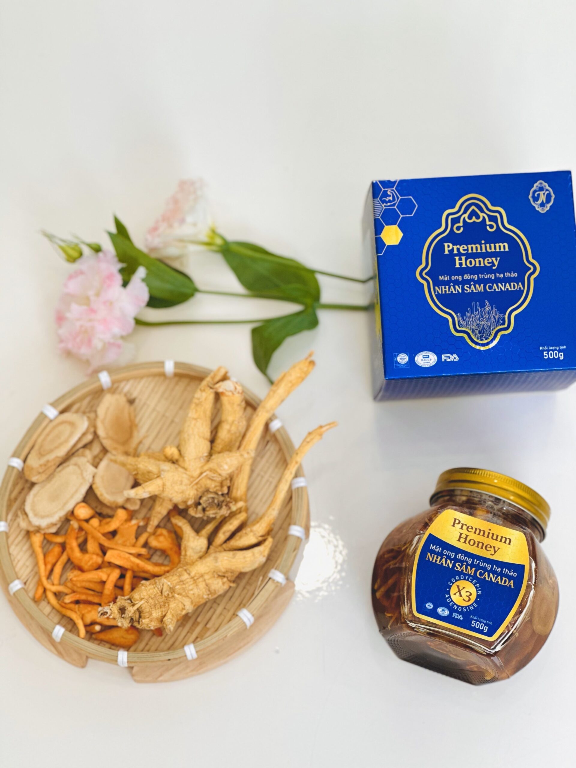 Mật ong đông trùng hạ thảo nhân sâm Canada 500gr