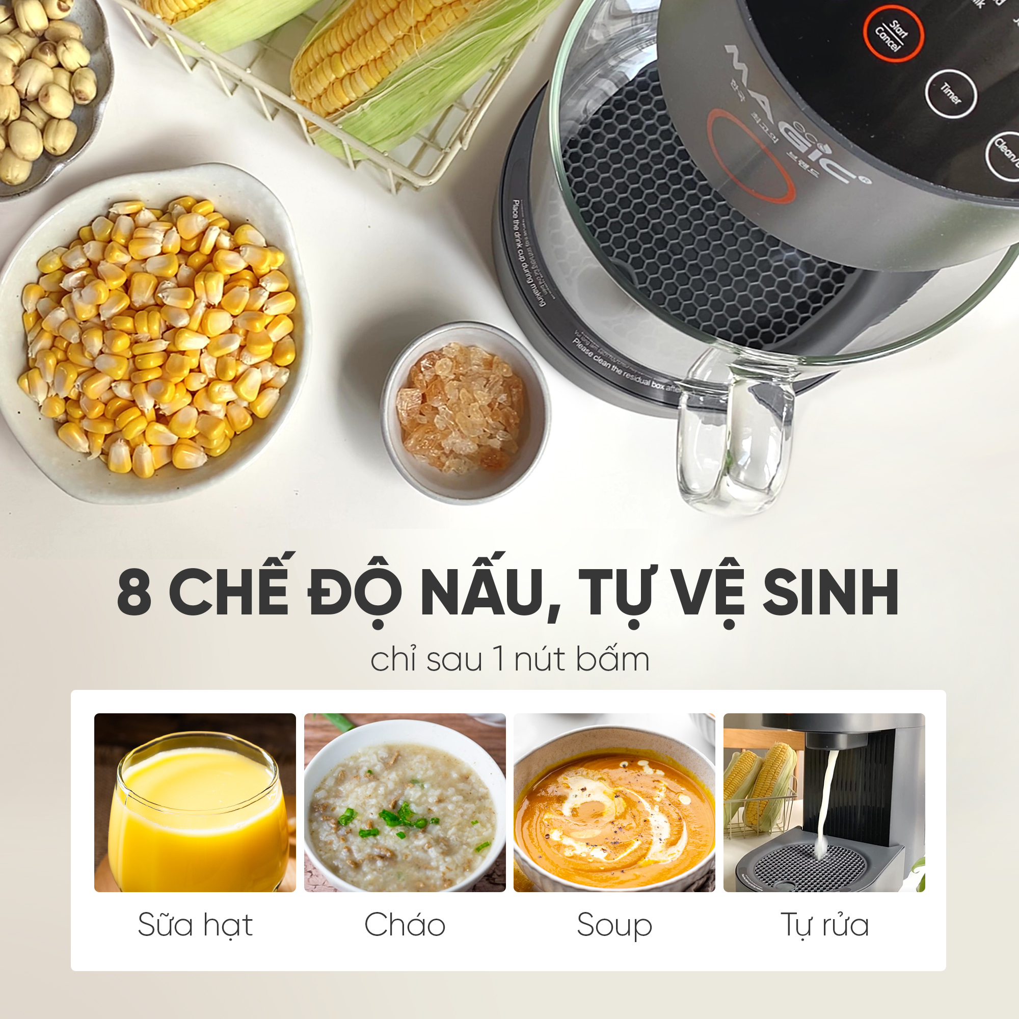 Máy làm sữa hạt đa năng tự động rửa Magic Eco AC-140