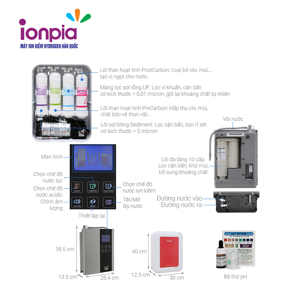- Máy lọc nước ion kiềm IONPIA 5100Model IONPIA 5100Mã sản phẩmIONPIA-5100Giấy phép sản xuấtNo.