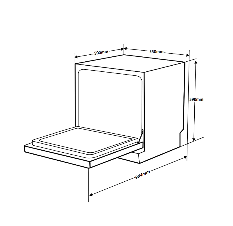 - Đặc tính sản phẩmDung tích: 10 bộ đồ ăn Châu ÁĐiều khiển: Nút nhấnChương trình rửa:- 7 chương trình: Rửa mạnh, Rửa thông thường, Rửa tiết kiệm, Rửa ly, Rửa 90 phút, Rửa nhanh, Tự động làm sạchTiêu chuẩn:Tiết kiệm năng lượng A+ (Châu Âu)Chế độ sấy: Turbo Air Pro với đèn UV diệt khuẩn, giữ liên tục trong 72 giờHẹn giờ: CóChức năng an toàn: Báo mức muối và chất tẩy rửa, bảo vệ chống tràn rò rỉ nước, khóa trẻ emThông tin kỹ thuậtKích thước sản phẩm: 550R x 500S x 595C mmMức tiêu thụ điện (1 lần rửa): 0,815 kWhMức tiêu thụ nước (1 lần rửa): 9,5 lítMức tiêu thụ điện (72h làm tươi & khô): 0,0138 kWh/giờHiệu điện thế: 220 - 240 VTổng công suất: 1380 ~ 1620 WĐộ ồn: 49 dB(A)Tần số: 50 HzXuất xứ: Trung Quốc.