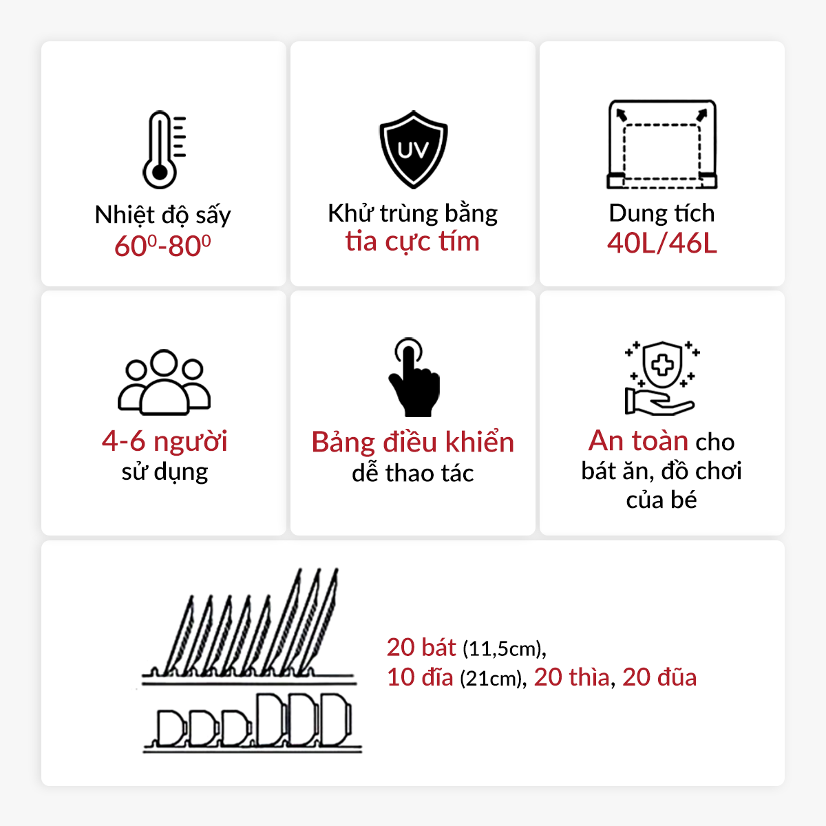 - ⚡ Công suất lớn – Sấy sạch cùng lúc:🍚 20 bát (11.