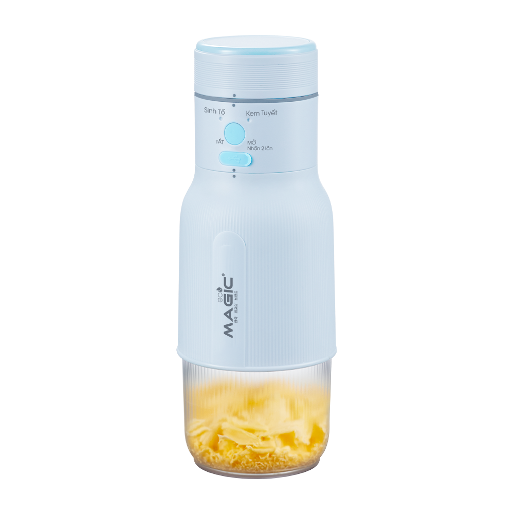 - Dung lượng pin 1500 mAh giúp người dùng thoải mái chế biến các món yêu thích. Có thể xay từ 10-12 ly sinh tố, hoặc làm được 12-14 ly kem đá bào (Bingsu) khi pin đầy