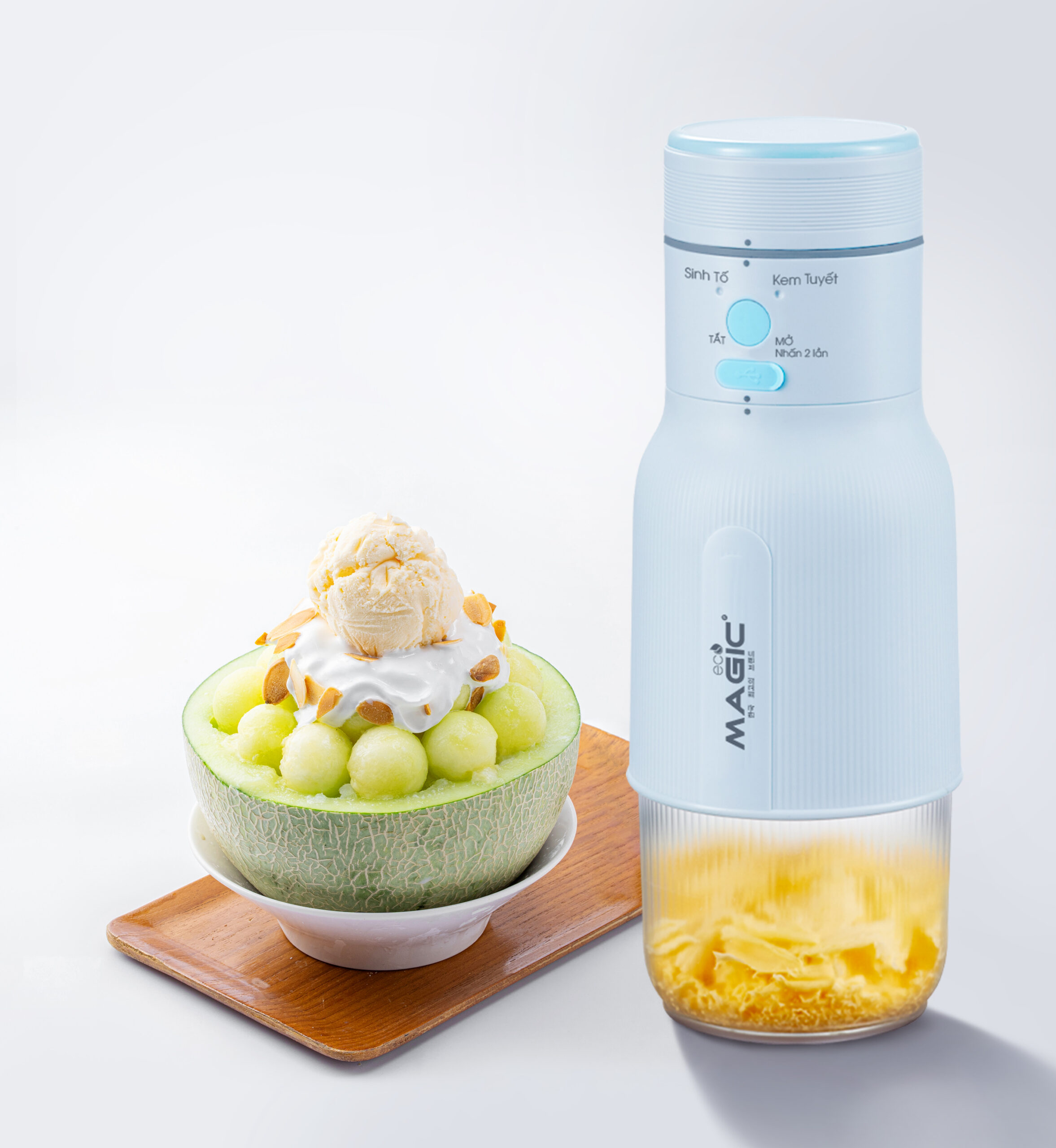 - Hoạt động dễ dàng với các bước hướng dẫn chi tiết, người dùng có thể thao tác đơn giản không tốn nhiều thời gian và nhiều thiết bị để hoàn thiện món tráng miệng kem đá bào (Bingsu)
