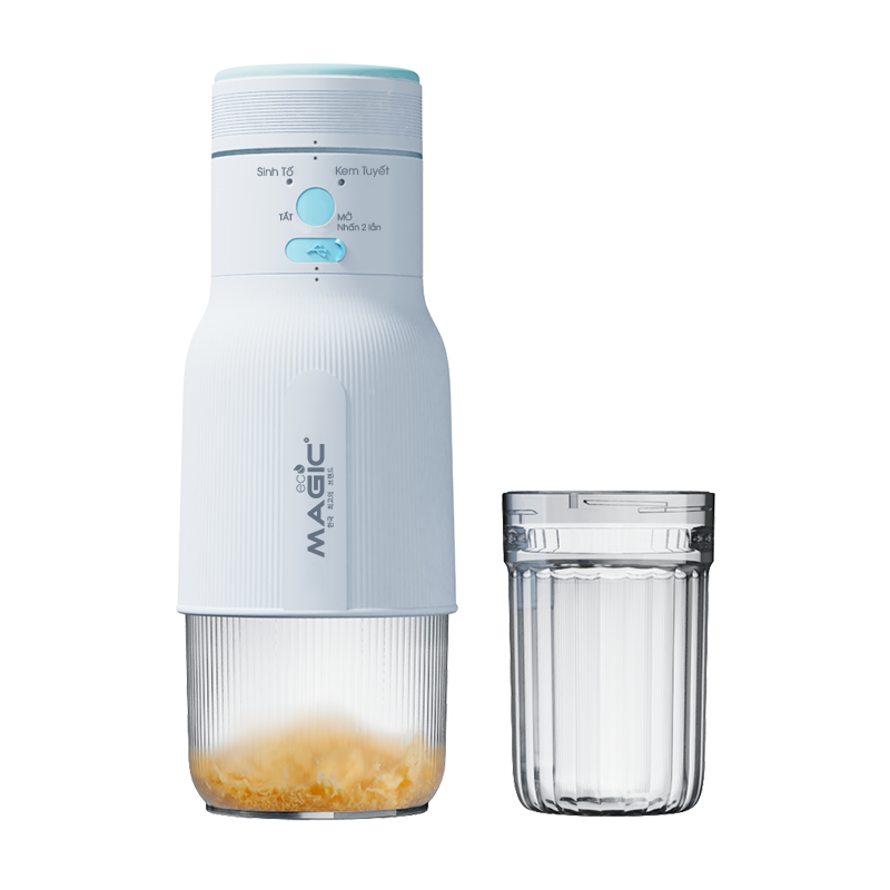 - Với chức năng pin sạc, máy có thể dễ dàng mang đi mọi nơi, sẵn sàn cho việc chế biến sinh tố đơn giản, vừa xay vừa uống được ngay, tăng hương vị tươi ngon