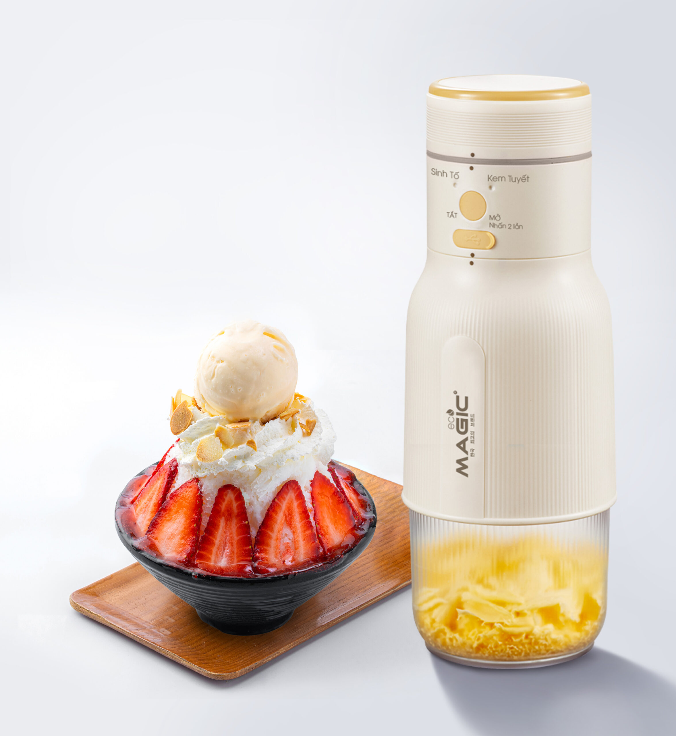- Hoạt động dễ dàng với các bước hướng dẫn chi tiết, người dùng có thể thao tác đơn giản không tốn nhiều thời gian và nhiều thiết bị để hoàn thiện món tráng miệng kem đá bào (Bingsu)