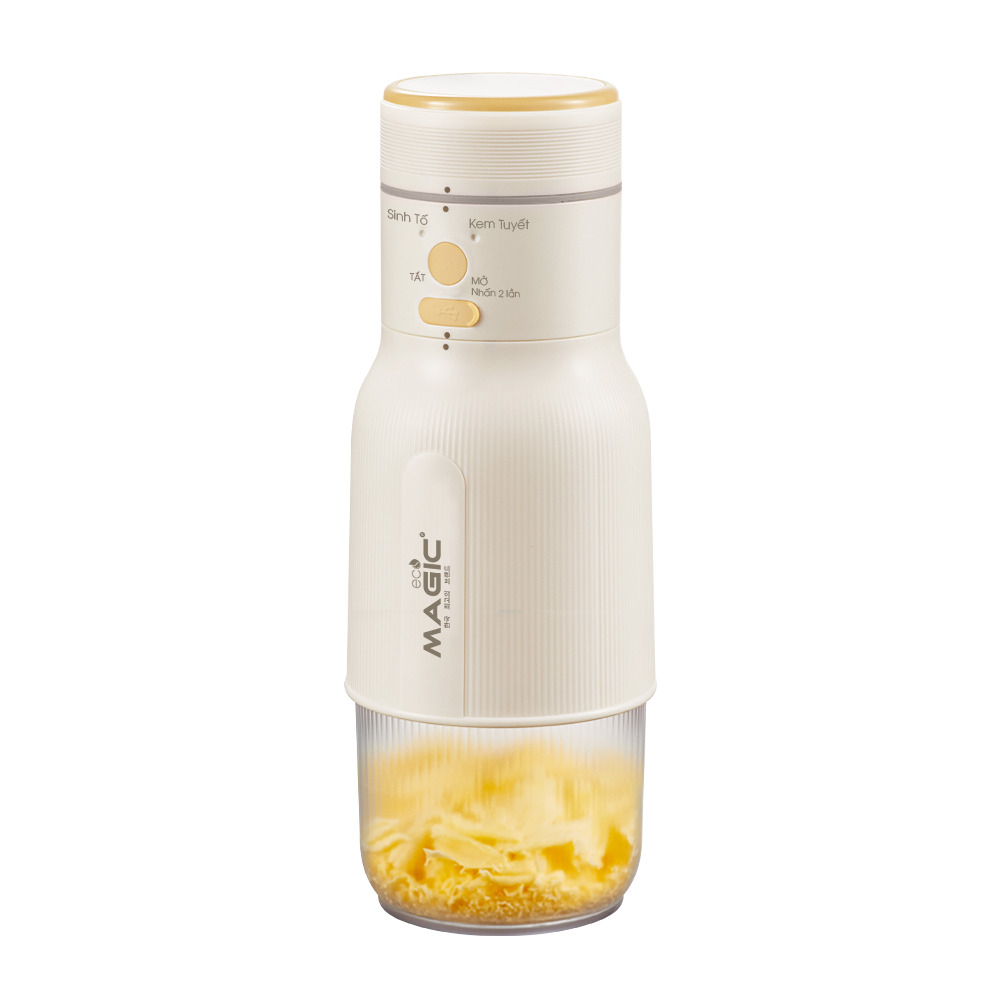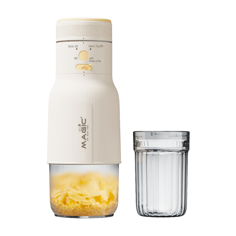 - Dung lượng pin 1500 mAh giúp người dùng thoải mái chế biến các món yêu thích. Có thể xay từ 10-12 ly sinh tố, hoặc làm được 12-14 ly kem đá bào (Bingsu) khi pin đầy
