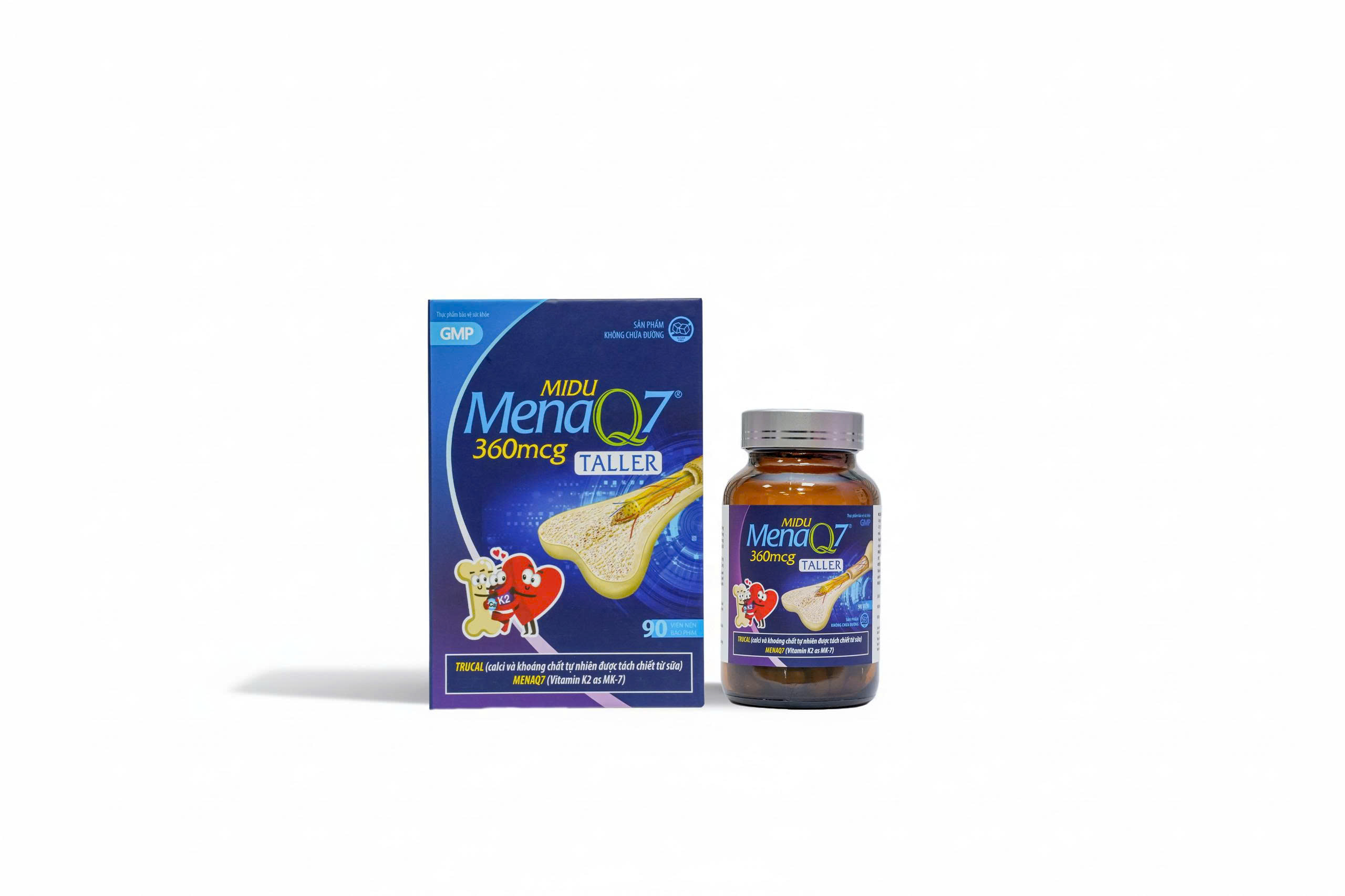 Midu MenaQ7 360mcg – Hỗ trợ chắc khỏe xương và phát triển chiều cao cho trẻ dậy thì với Trucal và Vitamin K2 hàm lượng cao (hộp 90 viên)