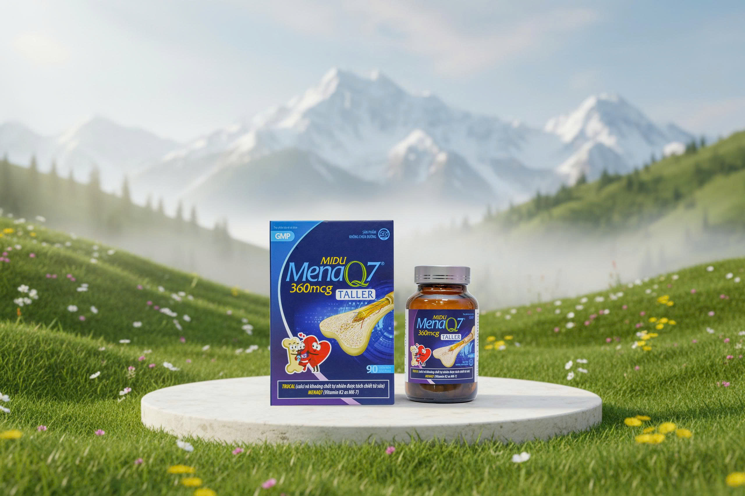 Tên sản phẩm: Midu MenaQ7 360mcg – Hỗ trợ chắc khỏe xương và phát triển chiều cao cho trẻ dậy thì với Trucal và Vitamin K2 hàm lượng cao (hộp 90 viên)